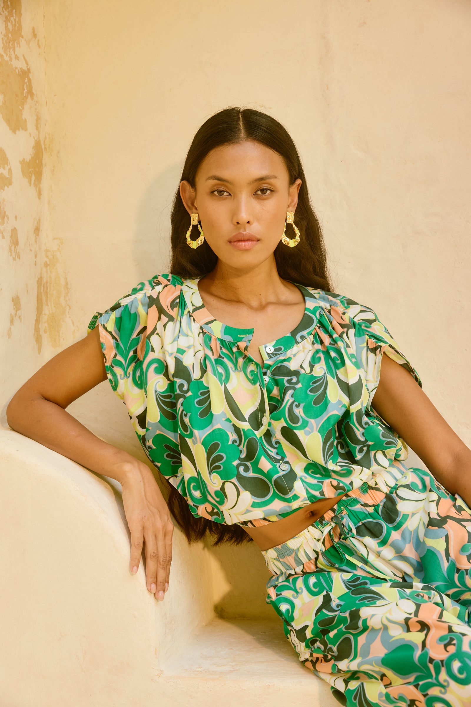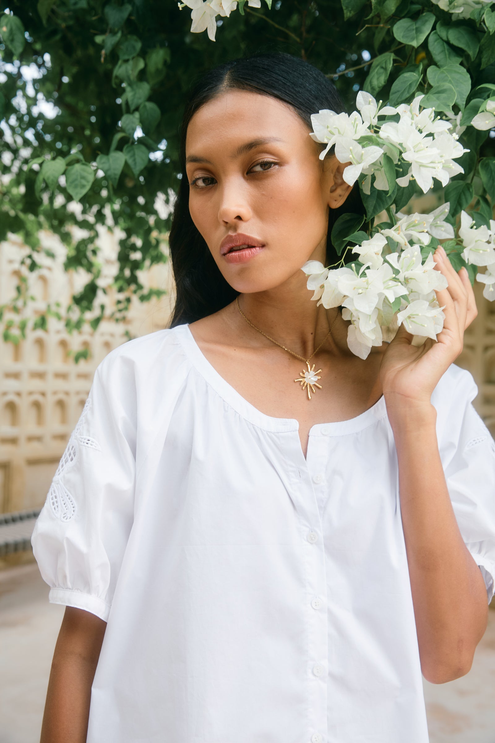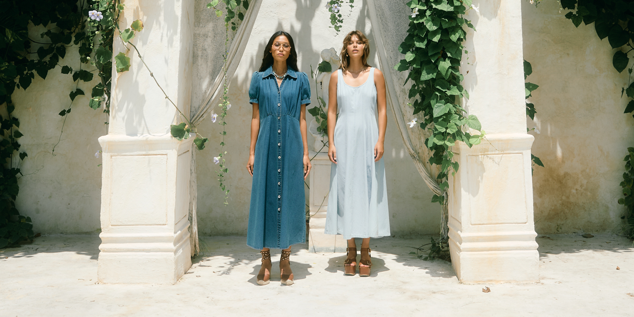 Folklore invites you into a world of quiet romance and effortless beauty. From sun-drenched courtyards to vine-covered glasshouses, each piece feels like a story stitched in cloth. This season, soft denim meets delicate lace cut-outs, dainty floral prints, and feminine silhouettes with a natural flow.