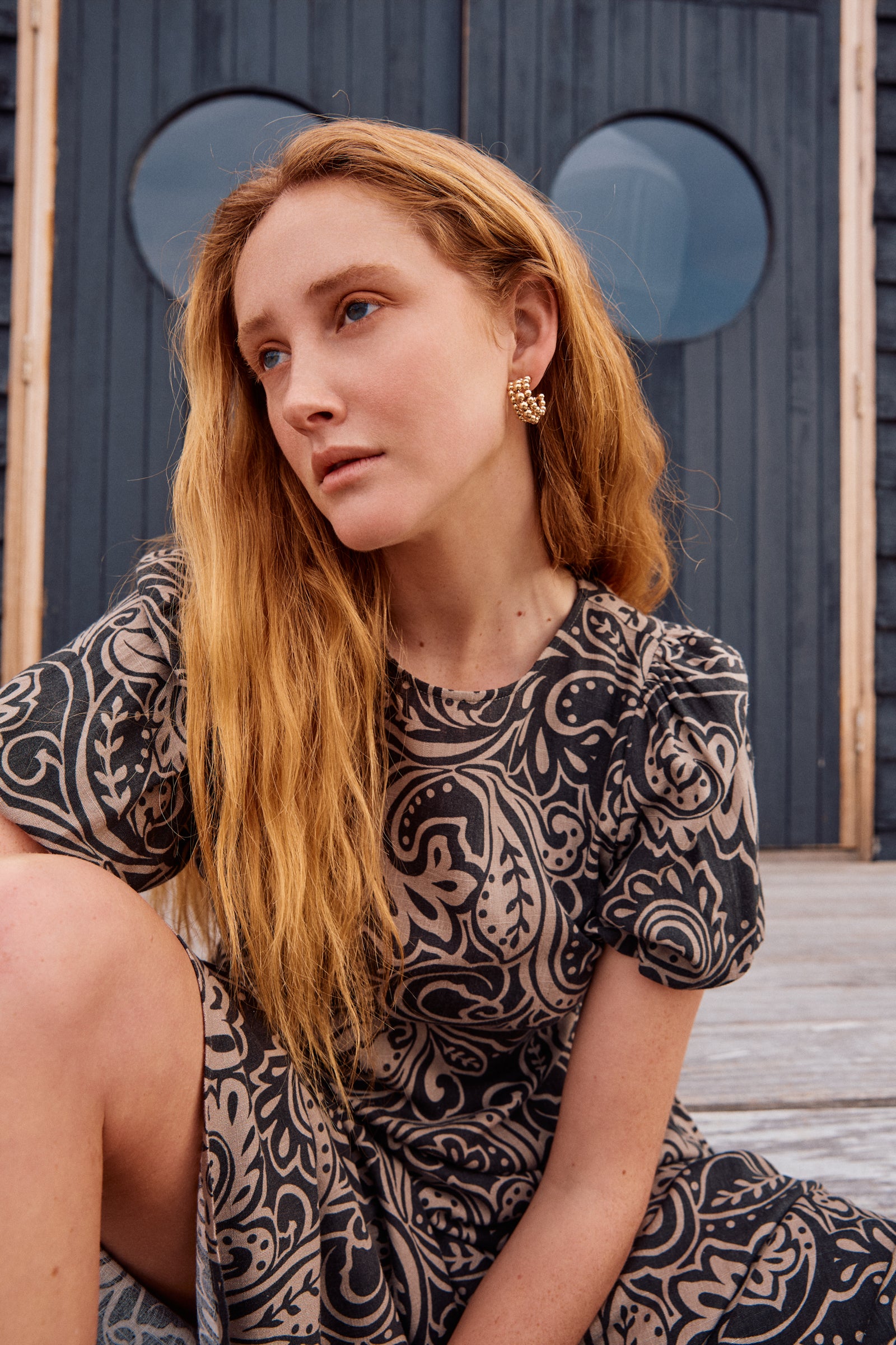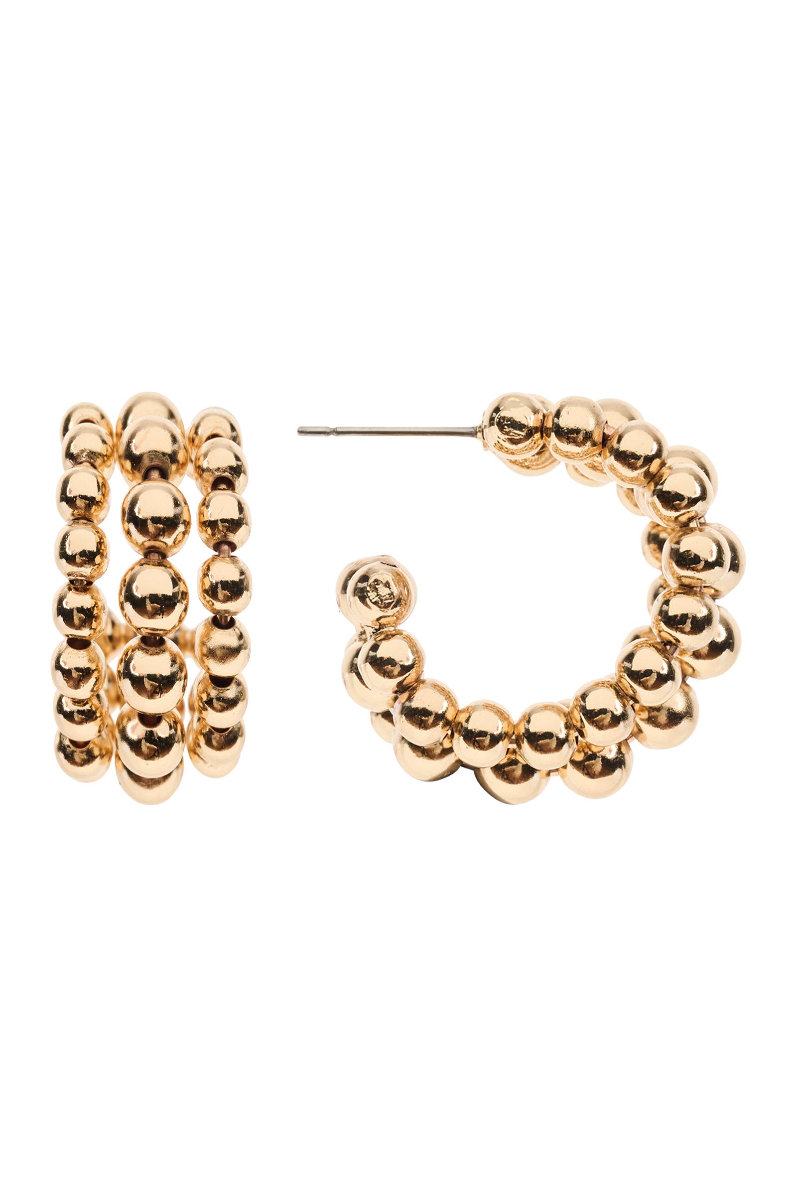 A playful hoop earring with layered bead detailing. Designed to add subtle shine and texture.