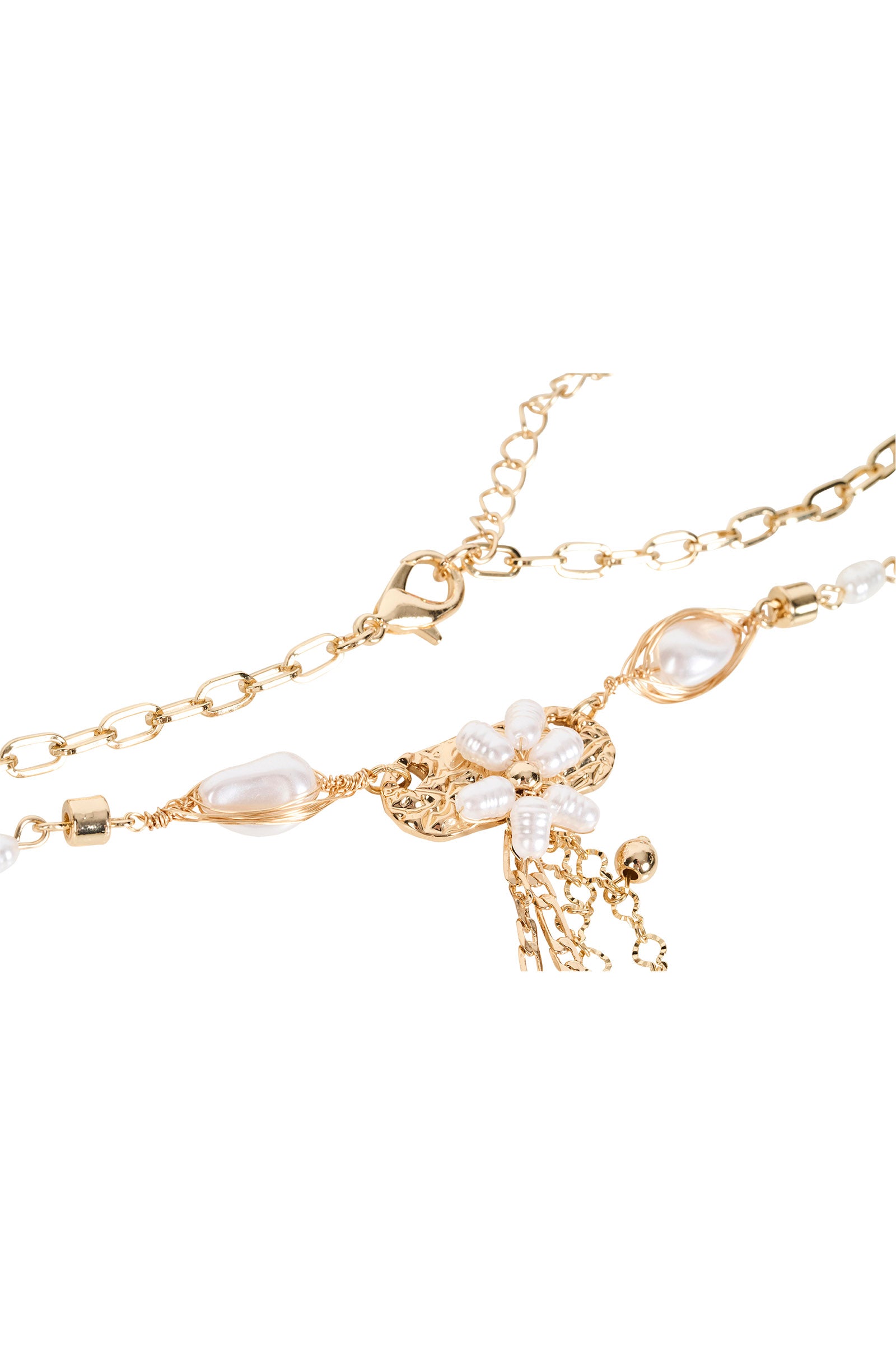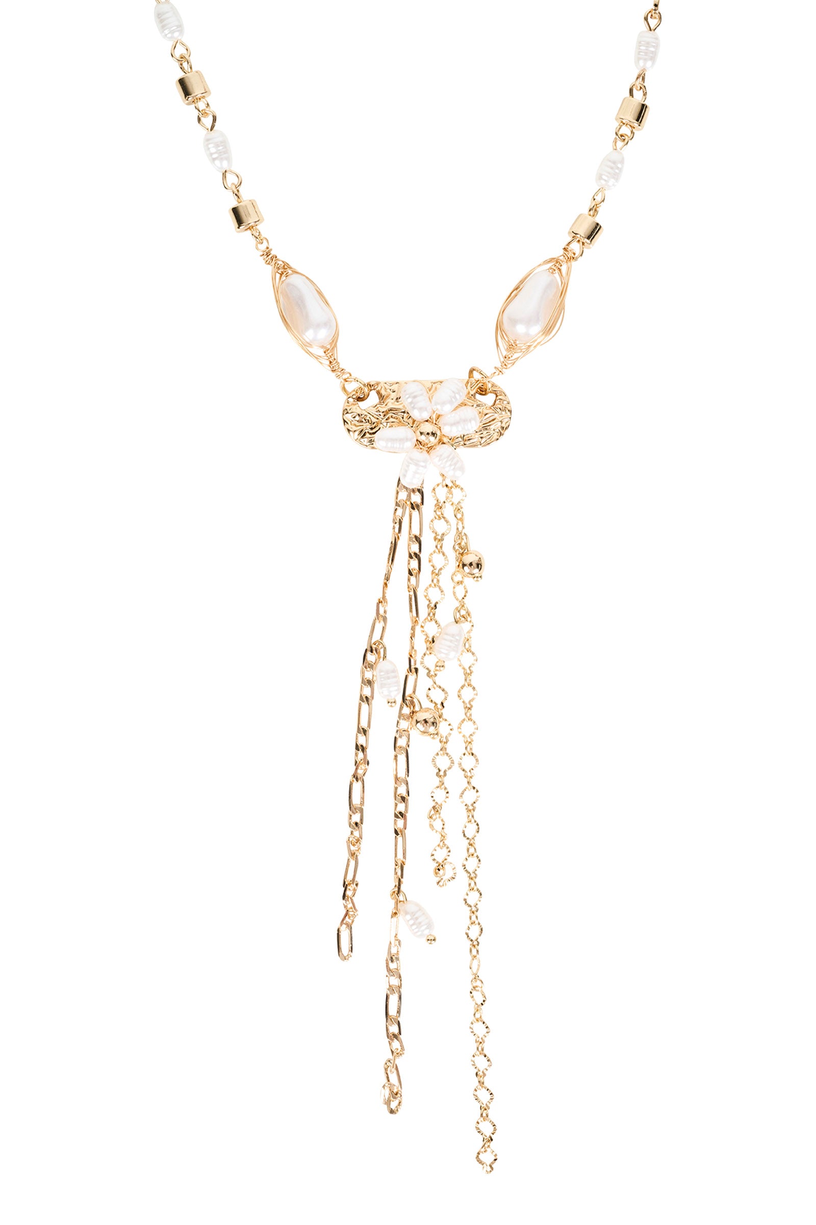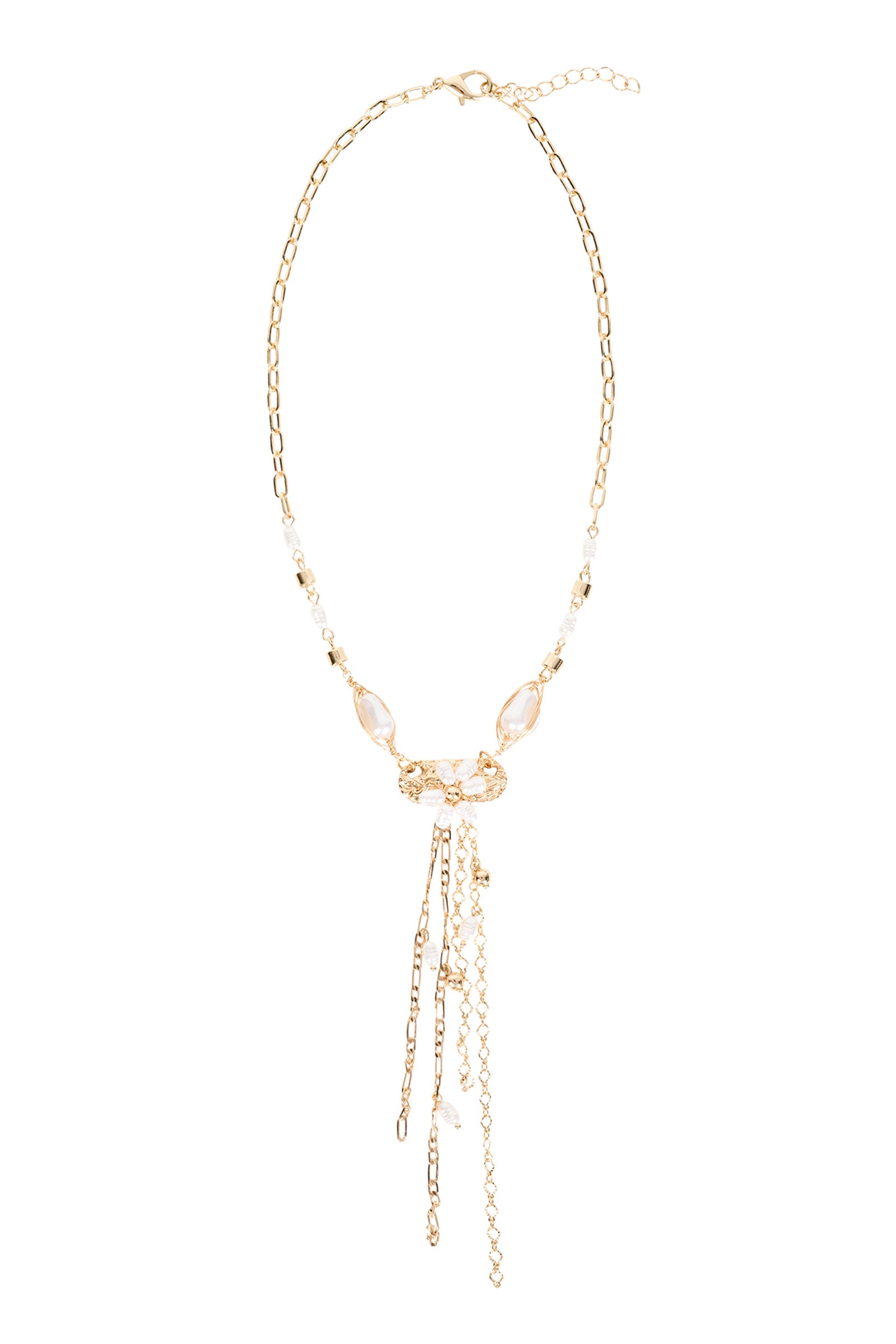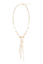 A long, statement necklace featuring a mix of beads and delicate drop detailing. Designed to bring soft movement and an elevated finish to simple looks.