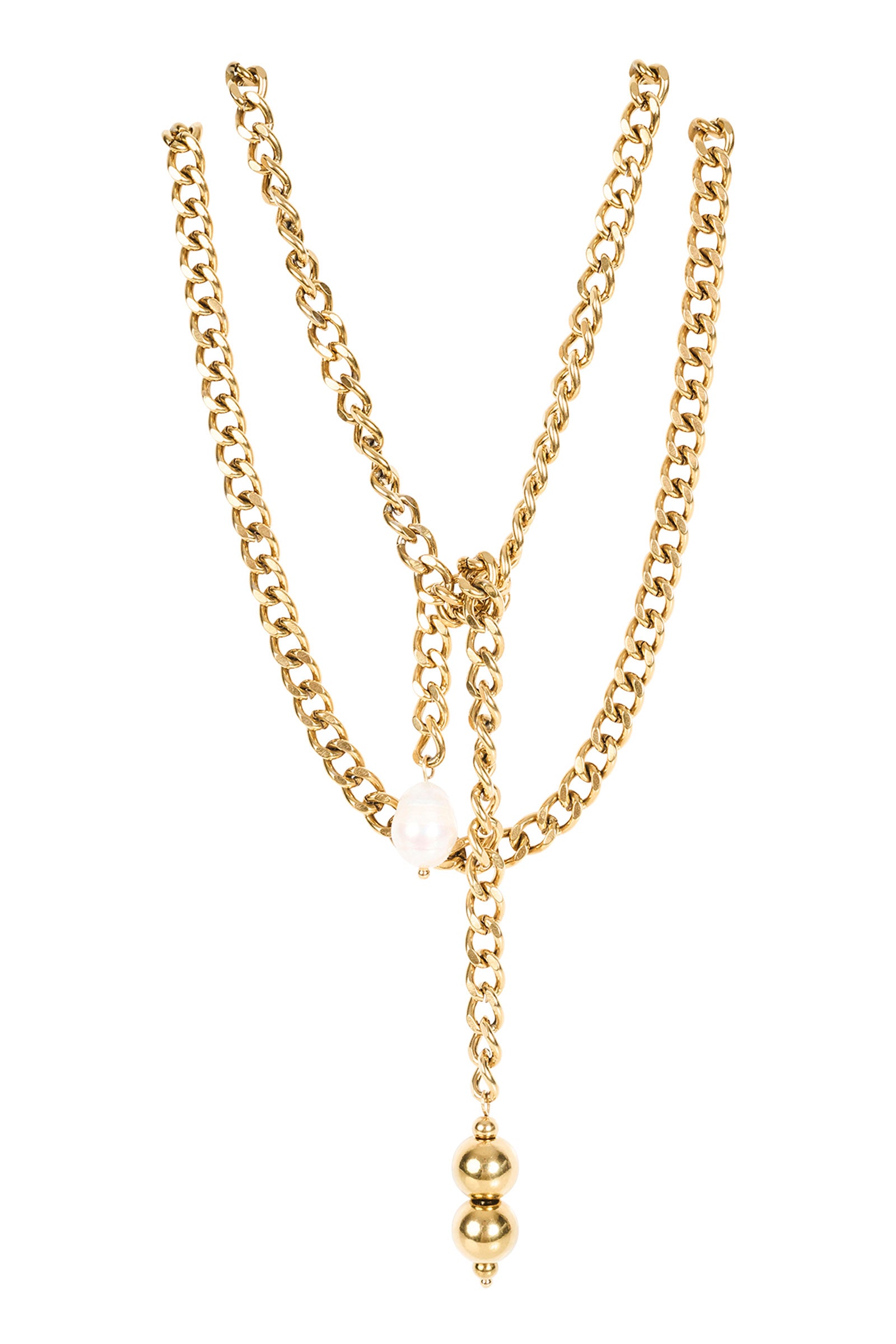 - Chunky chain designed to wrap, drape or tie or triple-layered necklace