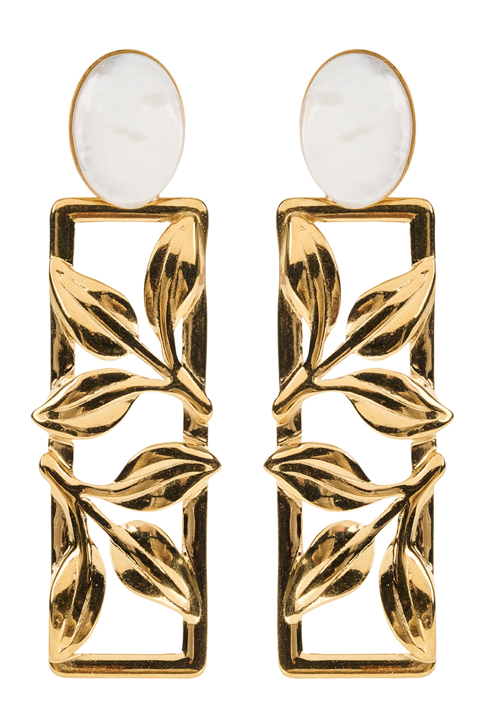 - Frame: Elongated rectangular drop with internal leaf detailing and marble-look stud