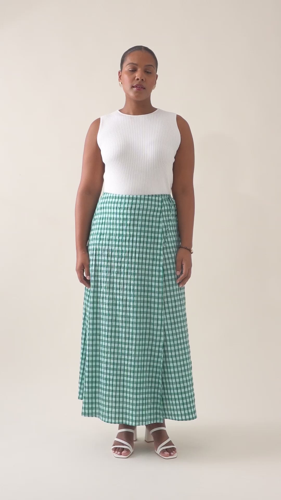 Designed in crisp gingham seersucker, this wrap skirt brings ease and style to summer dressing. Featuring a side tie fastening, small back belt loop and an A-line silhouette that skims the body gracefully.