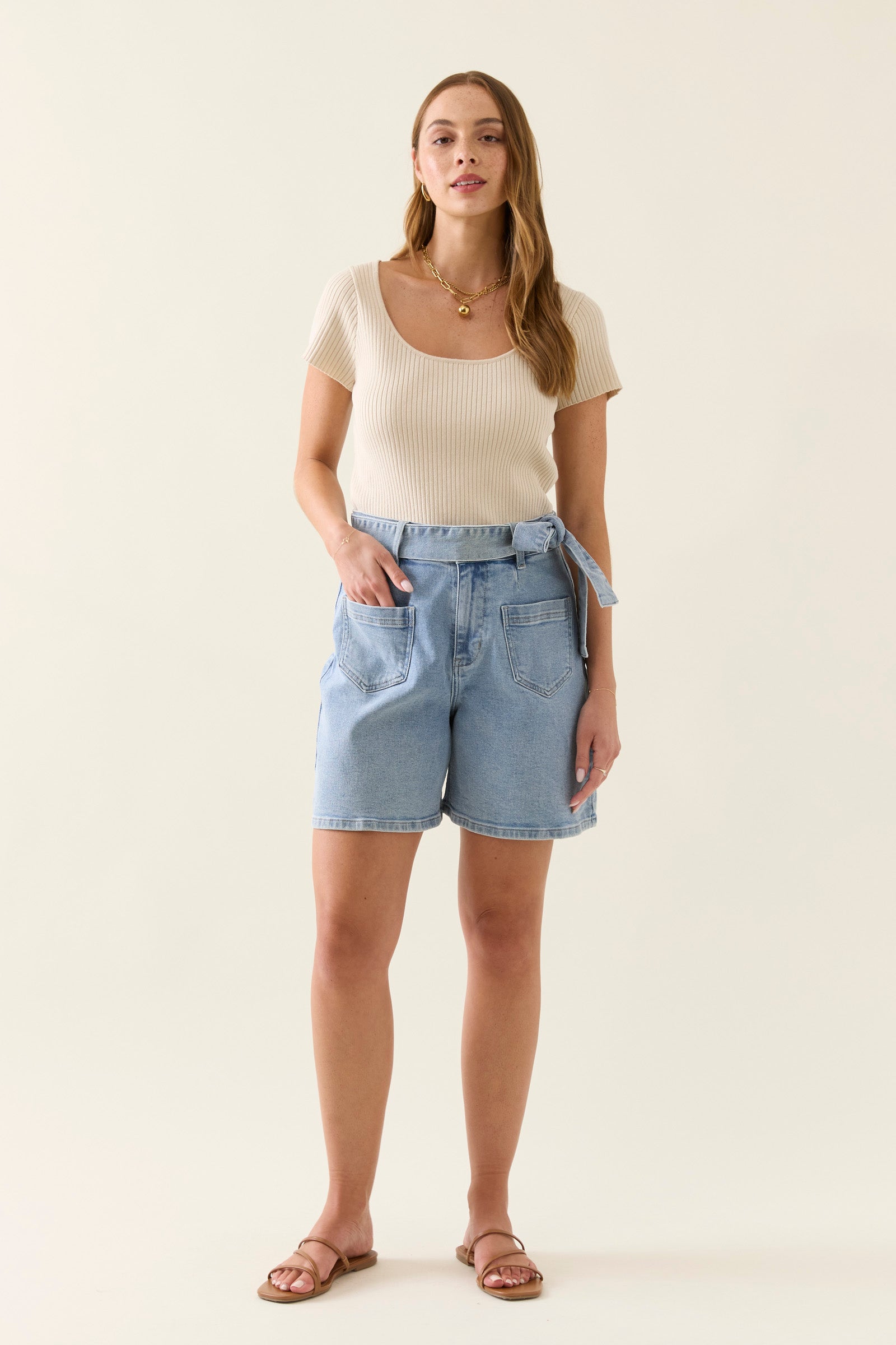 Pair with a flowing blouse or the Wilma Top for a relaxed and beautiful everyday outfit. Add strappy tan sandals and gold accessories to complete the look.