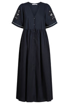 Looking for the perfect summer dress? The Nilsa Dress has arrived. Crafted in breathable cotton poplin with delicate cutwork embroidery and ladder lace, this button-through style balances structure with softness.