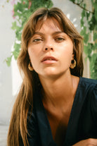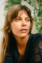 The Oline Flower Earring Hoop features a unique crescent shape adorned with pressed floral details, with an antique feel. Understated yet elegant, they add a natural accent to your summer wardrobe.