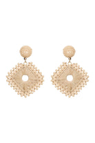 Delicate diamond-shaped earrings created with hand-woven and beaded detail. A quiet statement in soft colour.