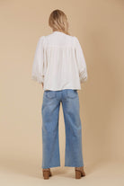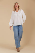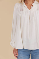 Achieve the perfect weekend style with the Aphrodite Blouse. Crafted with a linen blend, its relaxed fit offers a breezy, effortless vibe that complements your seasonal wardrobe. Featuring a flattering V-neck, a self-fabric tie, delicate lattice lace trim, and graceful balloon sleeves, this blouse pairs effortlessly with everything from fitted midi skirts to casual denim jeans or tailored trousers for a chic, laid-back look.