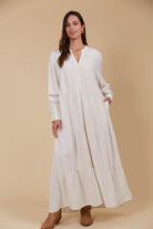 The Aphrodite Maxi is your go-to for effortless style with maximum impact— throw it on and you're ready to shine! Blending modern touches with a modest vibe, this versatile piece is perfect for the office, dinner dates, or special occasions. Crafted from a breezy linen blend, it's a great pick for those tricky "in-between" seasons. Pair it with your favourite loafers or boots, and you're good to go!