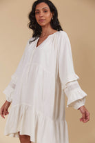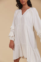 The Aphrodite Relaxed Dress combines comfort and elegance with its airy linen-blend fabric and relaxed fit. Eye-catching details like the statement sleeves, chic neckline, and flattering knee-length cut make this dress a standout piece. Pair it with knee-high boots, a stylish hat, and a bold tote for a brunch-ready look that turns heads.