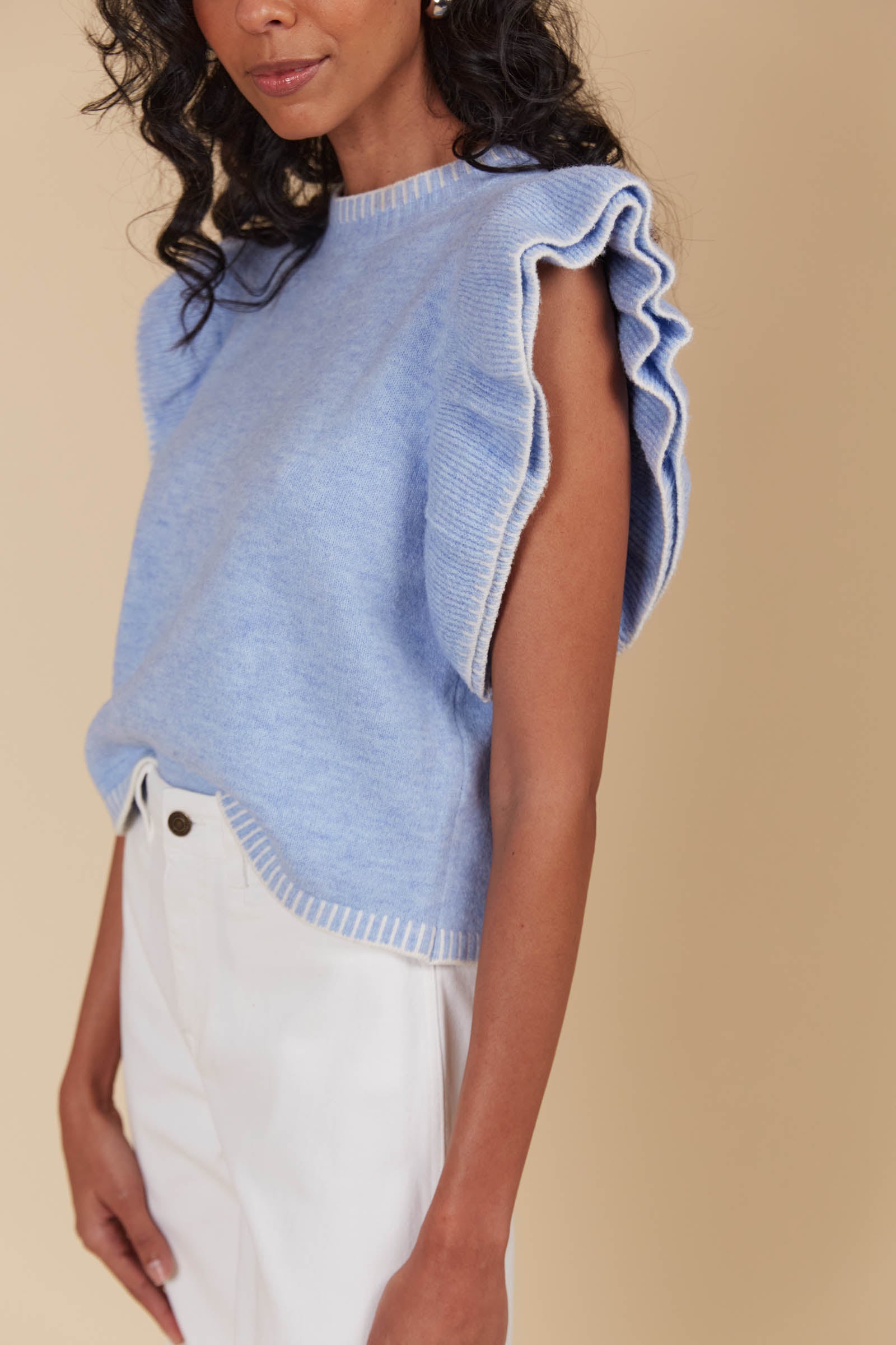 Just add jeans, and you're good to go! The Athena Frill Knit Top steals the spotlight with its dramatic frill sleeves and eye-catching contrast binding. Designed with a slightly cropped length, it's the perfect match for high-waisted bottoms, adding a stylish edge to your outfit. Crafted from a cosy wool and recycled blend, this knit top is a must-have for your transeasonal wardrobe. Trust us—you'll want one in every colour!
