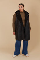 The Eris Vest is the perfect piece for a sophisticated winter outing, offering warmth and style for alfresco brunches, winery weekends, or weekend retreats. The contrast of shearling detailing adds a striking touch to this chic vest, which features a longline silhouette for extra coverage and practical welt pockets. For a sharp and refined ensemble, wear it over a knit top, tailored trousers, and sleek ankle boots.