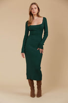 The Juno Knit Dress is the perfect pick for sunset cocktails and beyond. With its flattering square neckline and figure-hugging bodycon fit, this dress radiates feminine charm. Made from a cosy rib knit, this knit dress keeps you warm as the evening cools down. Pair it with ankle boots, bold accessories, a sleek clutch, and a stylish coat to complete the look.