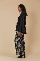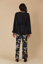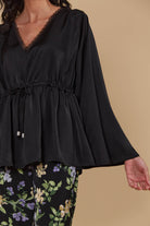 Crafted with a silky smooth texture, the Maia Relaxed Top is a chic staple for your winter wardrobe. Its graceful V-neckline, adorned with lace trim, and flowing bell sleeves lends a touch of elegance. The adjustable drawstring waist offers a custom fit that accentuates your shape beautifully. Perfect for an evening dinner or a stylish gathering, the Maia Relaxed Top pairs seamlessly with tailored trousers for a polished, timeless ensemble.