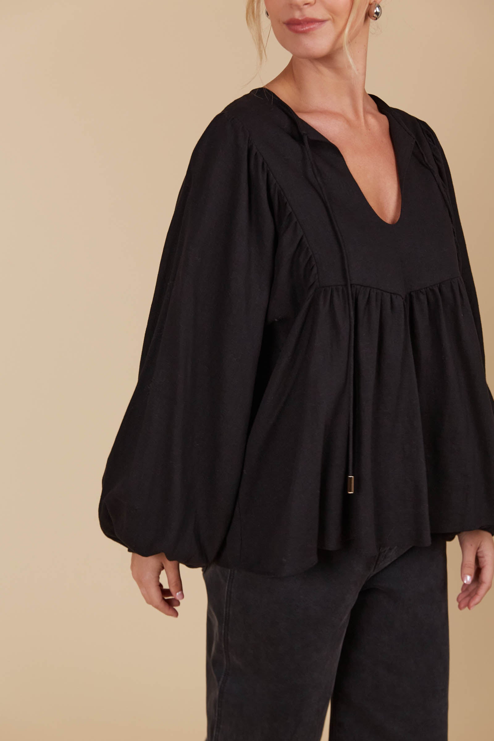 This blouse is your go-to for any occasion. Heading to brunch? Check. The office? Definitely. A weekend getaway? Of course. The Venus Blouse combines versatility and style in a high-quality linen blend. The self-fabric tie at the neckline lets you customise the fit, while gathered accents and a flowy hem create a flattering look. Pair it with tailored pants and ballet flats for a polished yet relaxed vibe.