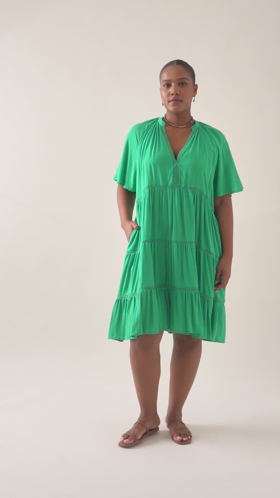 Designed with thoughtful tiers, subtle trim, and a flattering A-line shape, this dress flows easily from coffee dates to beachside lunches. The midi length is both flattering and perfect for warm summer days - comfortable, stylish, and easy to wear.