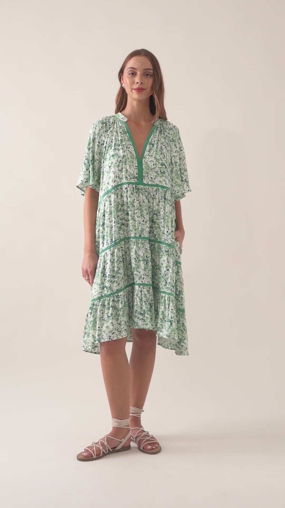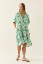Designed with thoughtful tiers, subtle trim, and a flattering A-line shape, this dress flows easily from coffee dates to beachside lunches. The midi length is both flattering and perfect for warm summer days - comfortable, stylish, and easy to wear.