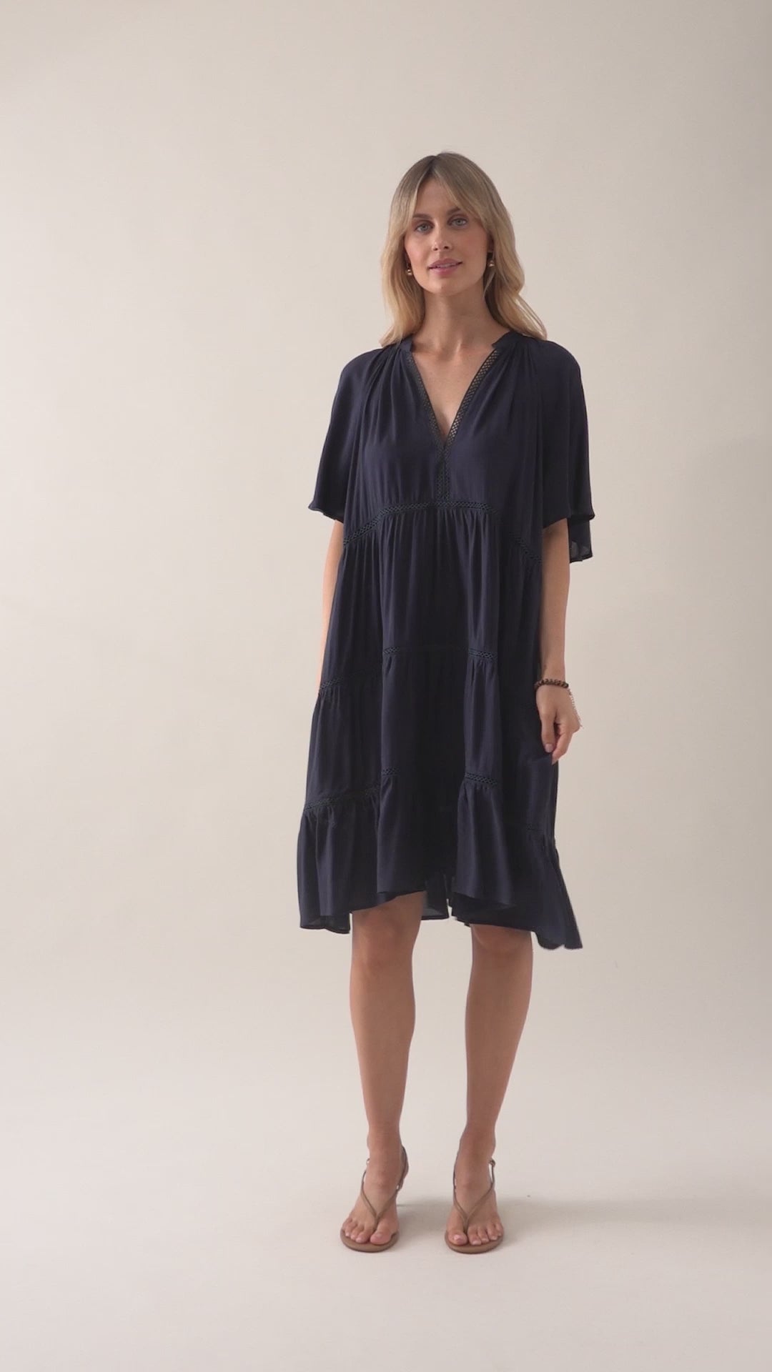 Designed with thoughtful tiers, subtle trim, and a flattering A-line shape, this dress flows easily from coffee dates to beachside lunches. The midi length is both flattering and perfect for warm summer days - comfortable, stylish, and easy to wear.