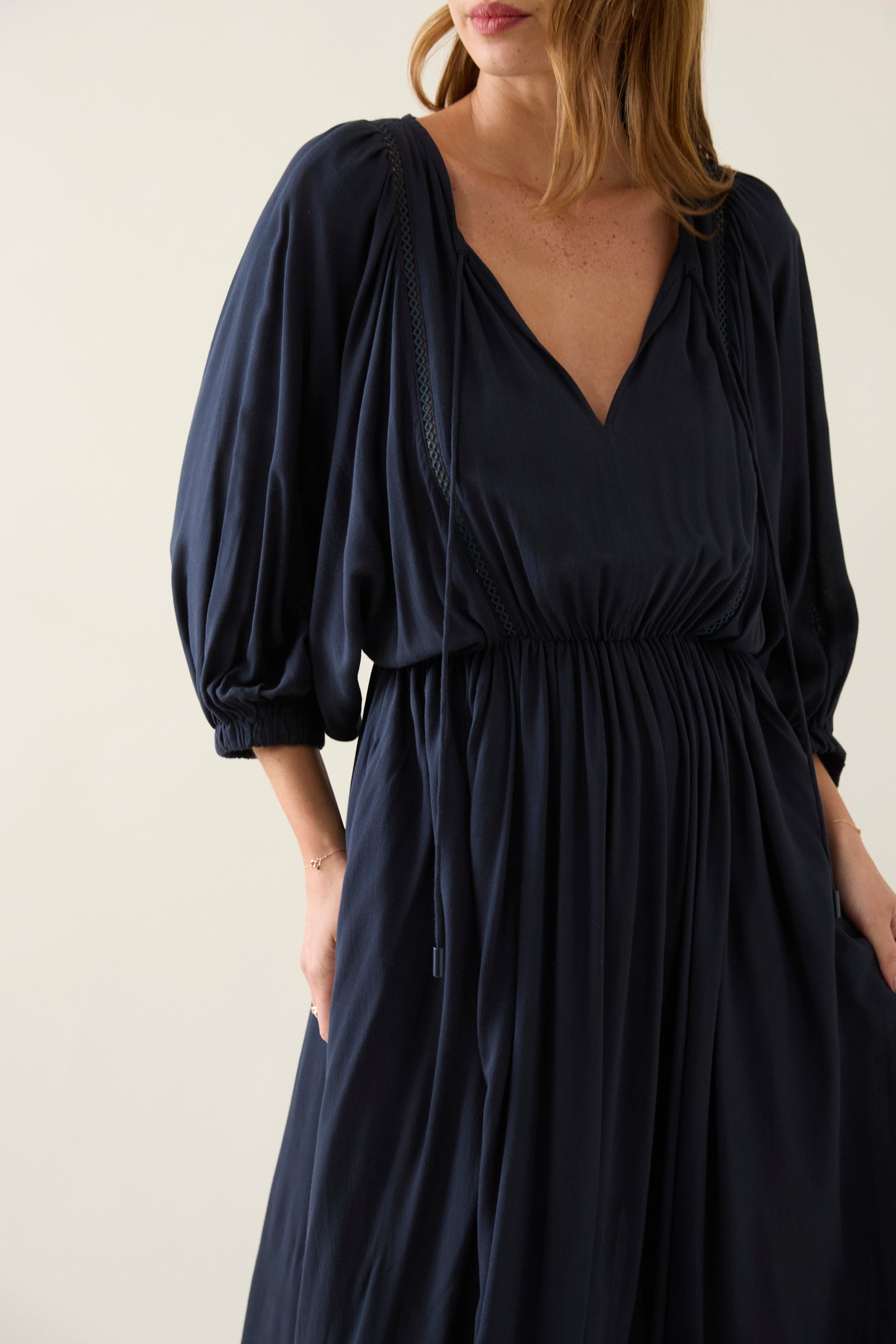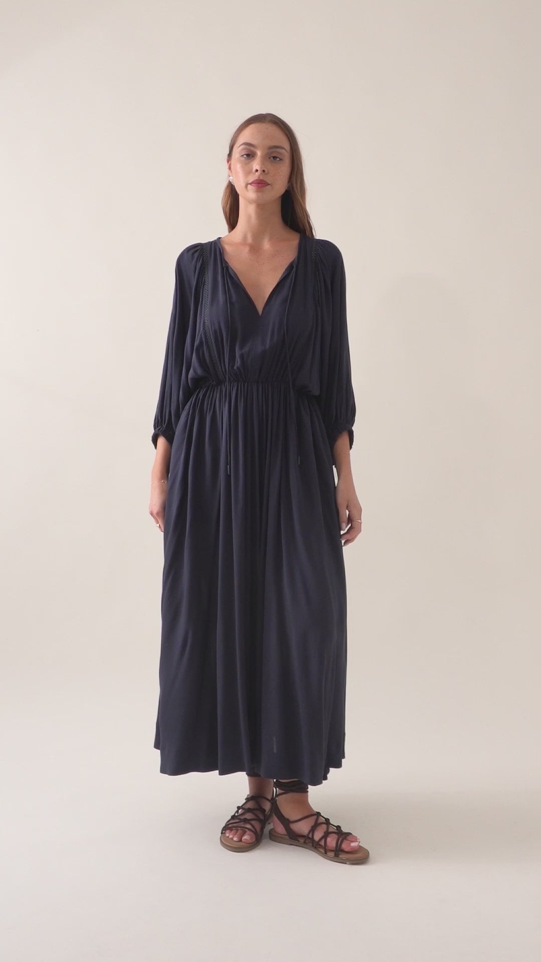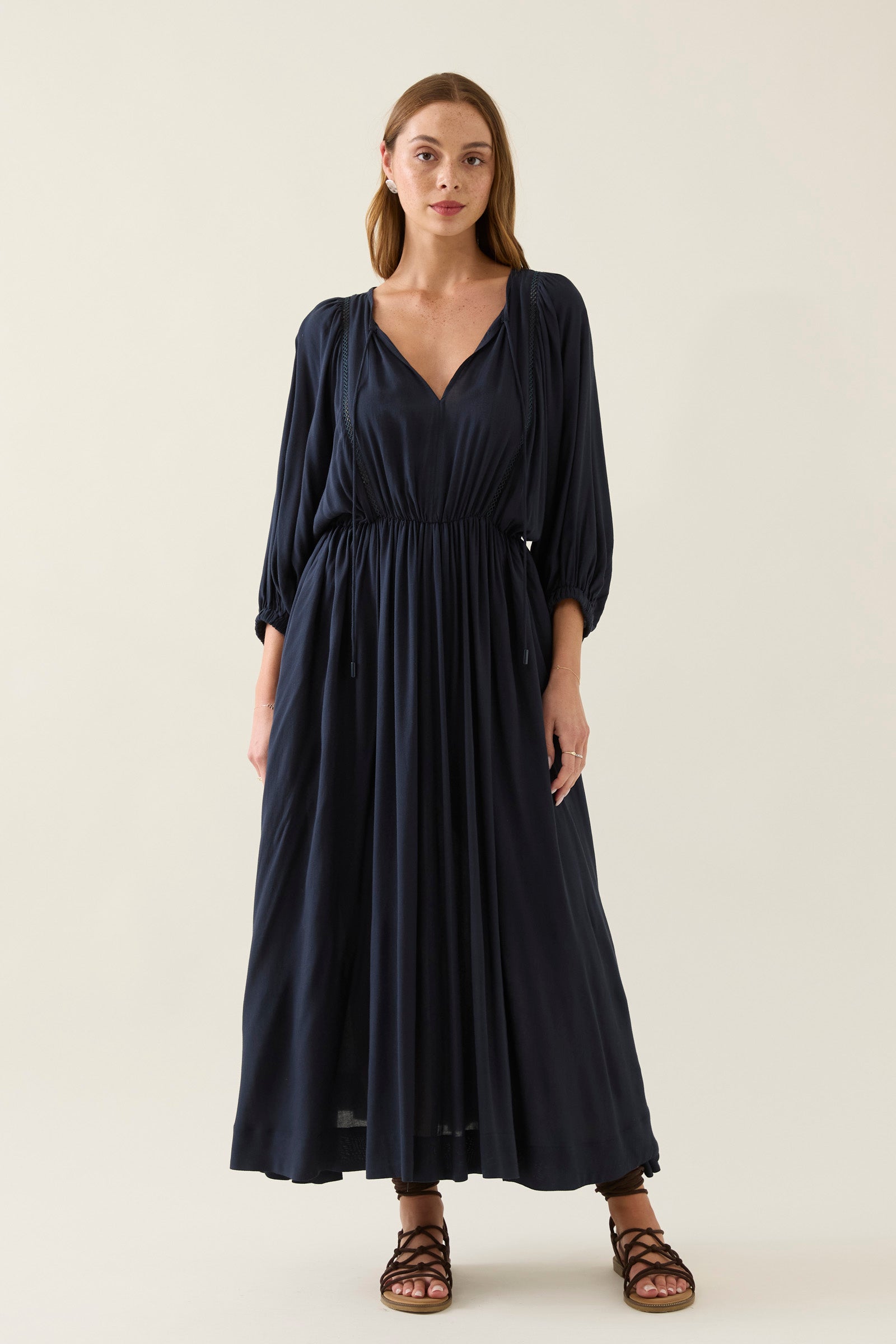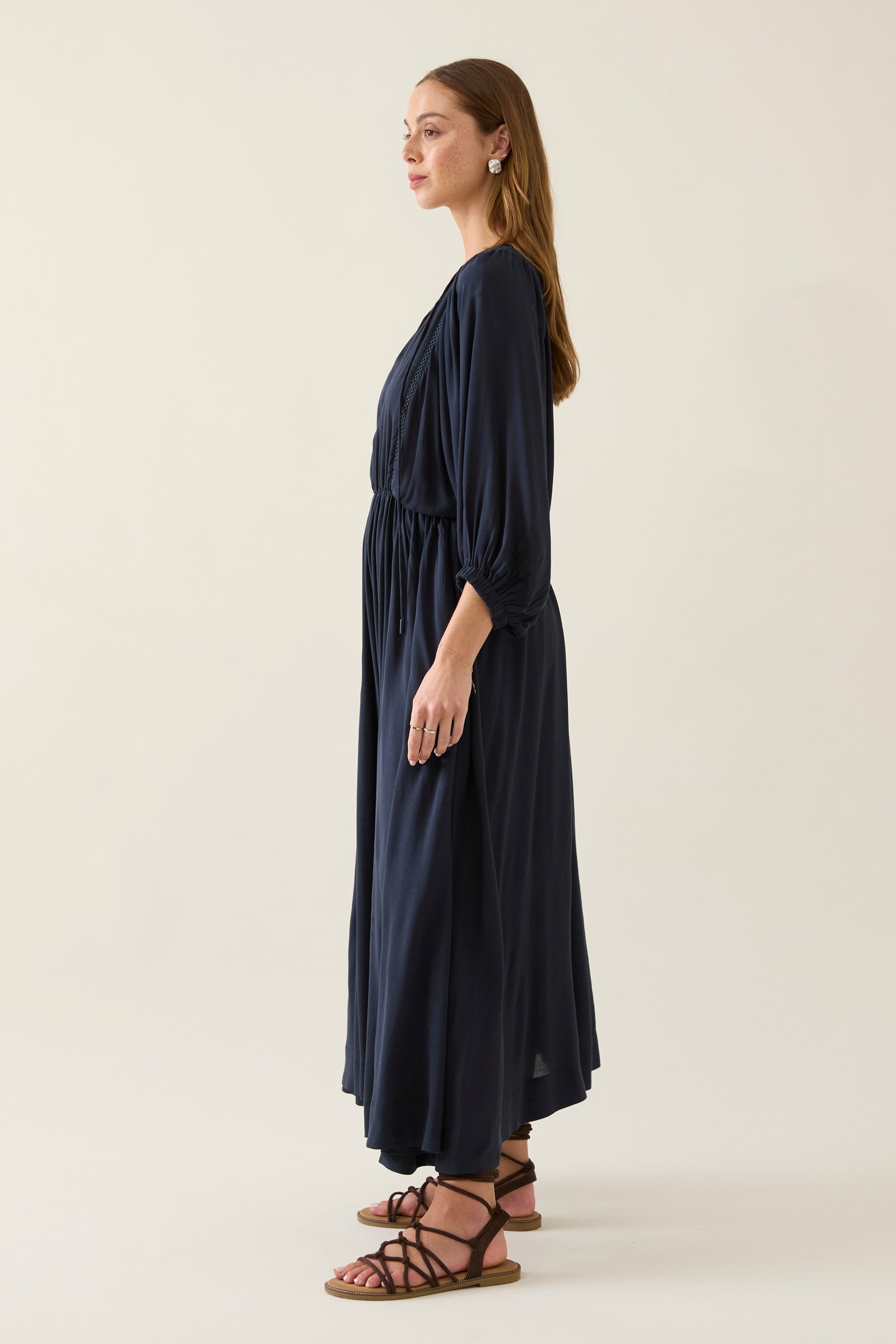 Long and flowing, the Oline Maxi Dress offers everyday comfort with an elevated twist. With soft trim, elasticated waist and full A-line skirt, it's perfect for crisp mornings or breezy nights.