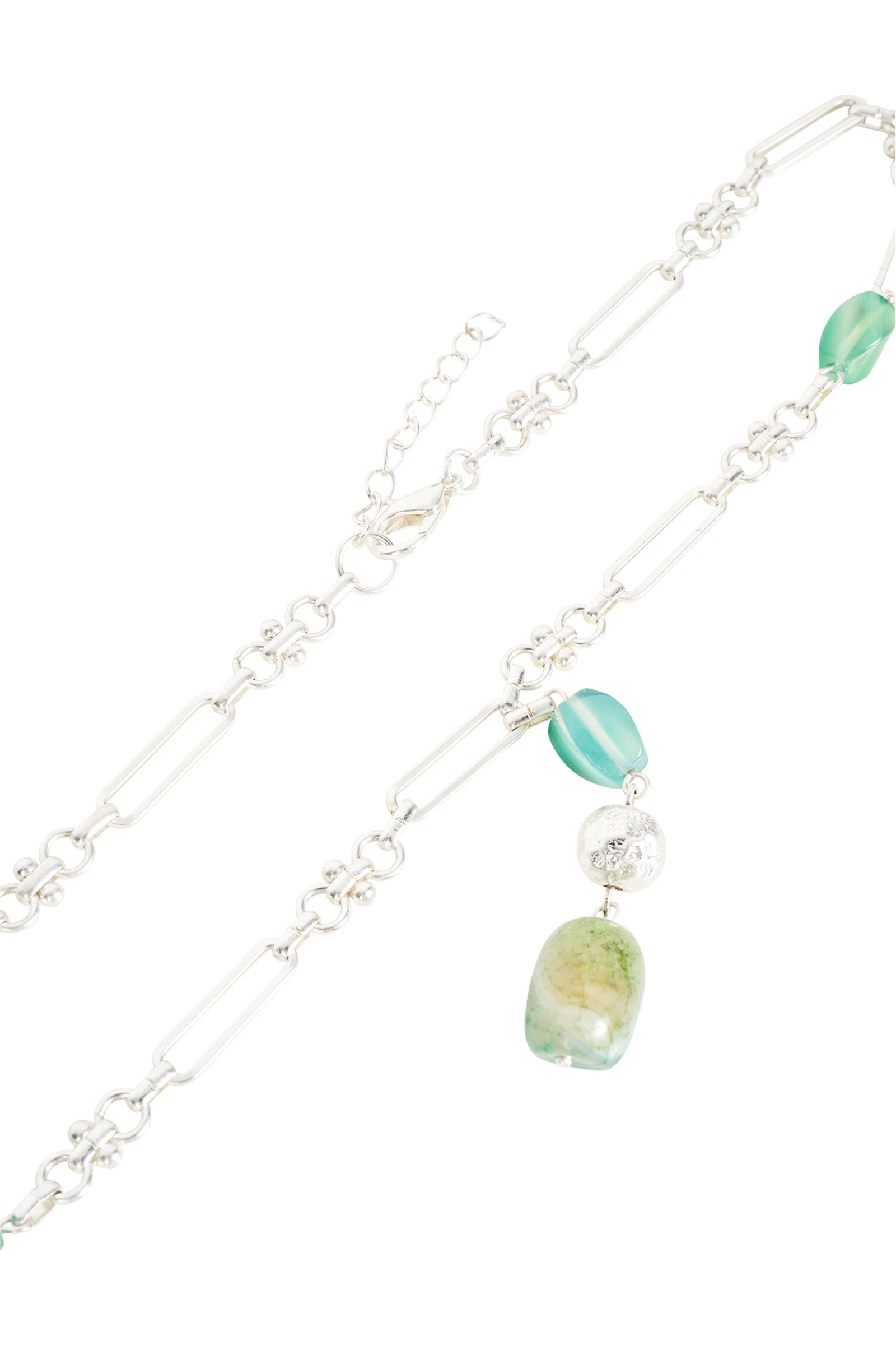 A long, statement necklace featuring a mix of beads and delicate drop detailing. Designed to bring soft movement and an elevated finish to simple looks.