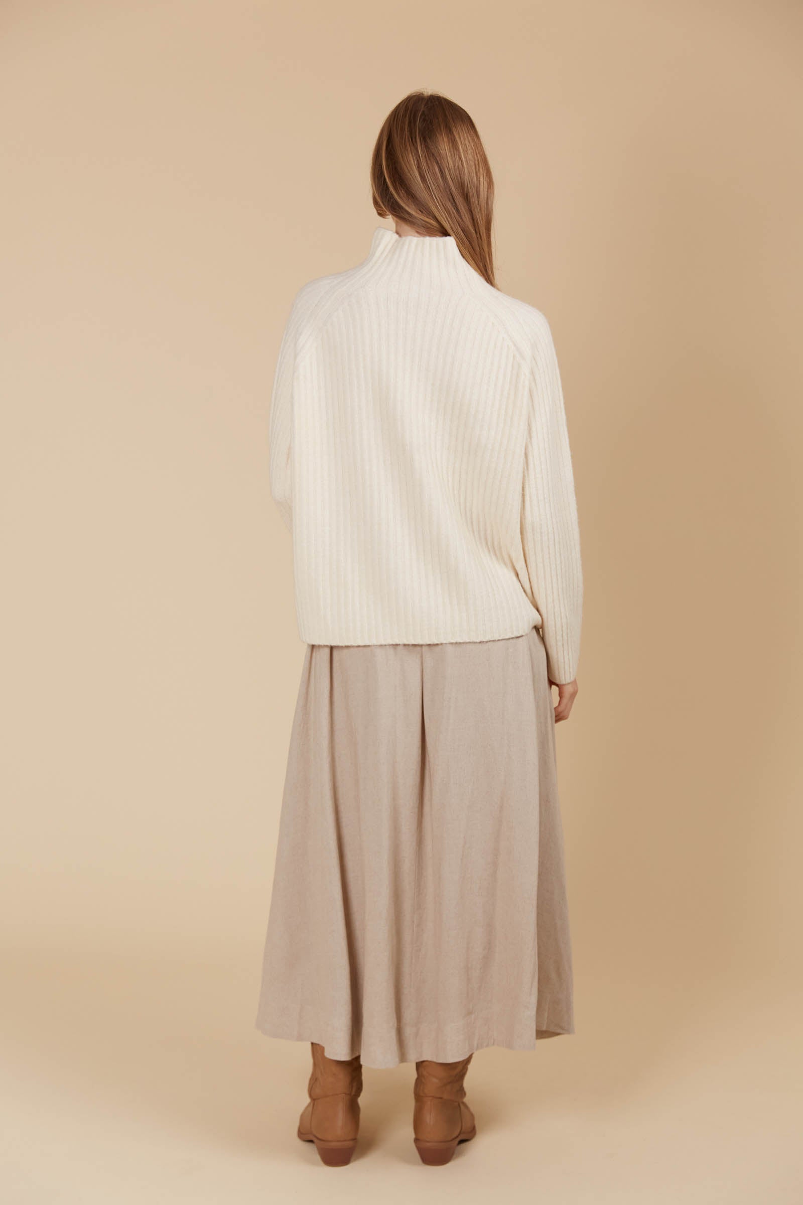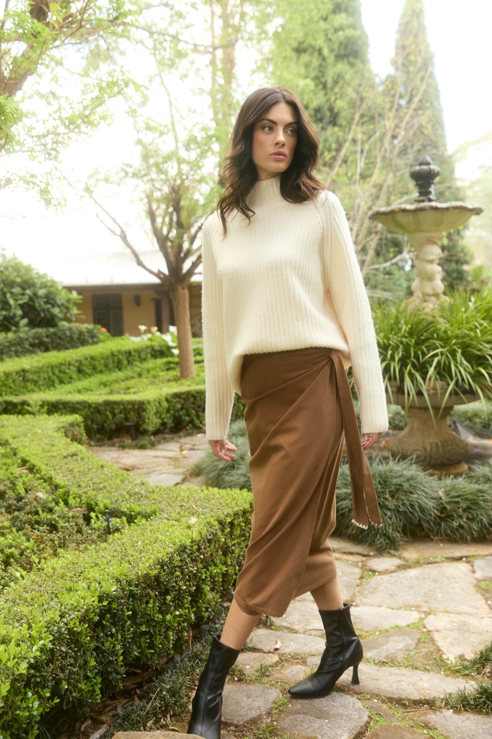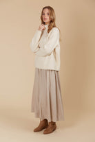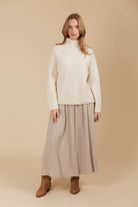 The Miru Jumper embodies cosy sophistication with its effortless silhouette and luxurious wool-recycled blend. This versatile knit is a fresh addition to your seasonal wardrobe, pairing seamlessly with linen trousers, classic denim, a breezy maxi skirt, or a tailored mini for a chic, well-coordinated look.