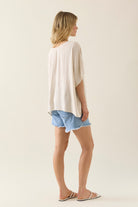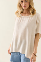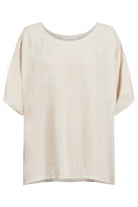 An easy linen-blend top with a relaxed drape and wide short sleeves. Designed with a simple round neckline and an airy silhouette that flatters the body.
