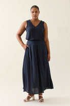 A classic silhouette with thoughtful details, the Oline Pleat Skirt is designed with a flat front, elasticated back, and a crisp box pleat. The full-length hem and practical pockets add to its refined style.