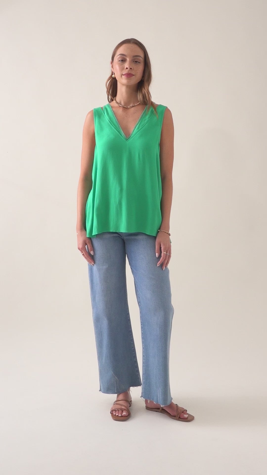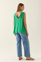 The Oline Tank offers a refined layered look with subtle trim detailing, a flattering V-neckline, and a softly unexpected shoulder cut-out that adds just the right amount of edge. Lightweight and easy to wear, it's designed for effortless summer days.