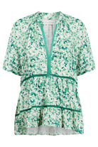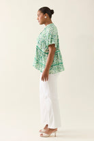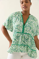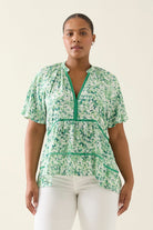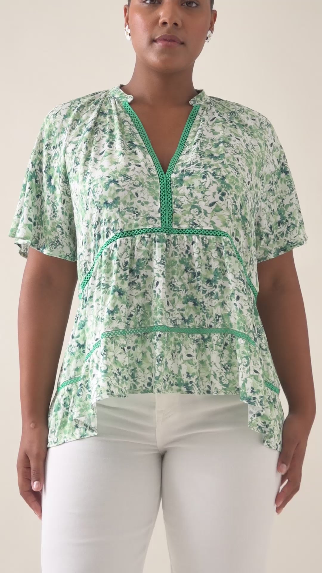 The Oline Top is a flattering style with soft gathering and trim details. Featuring a V-neckline and tiered silhouette, it's a versatile piece that feels relaxed yet put together.