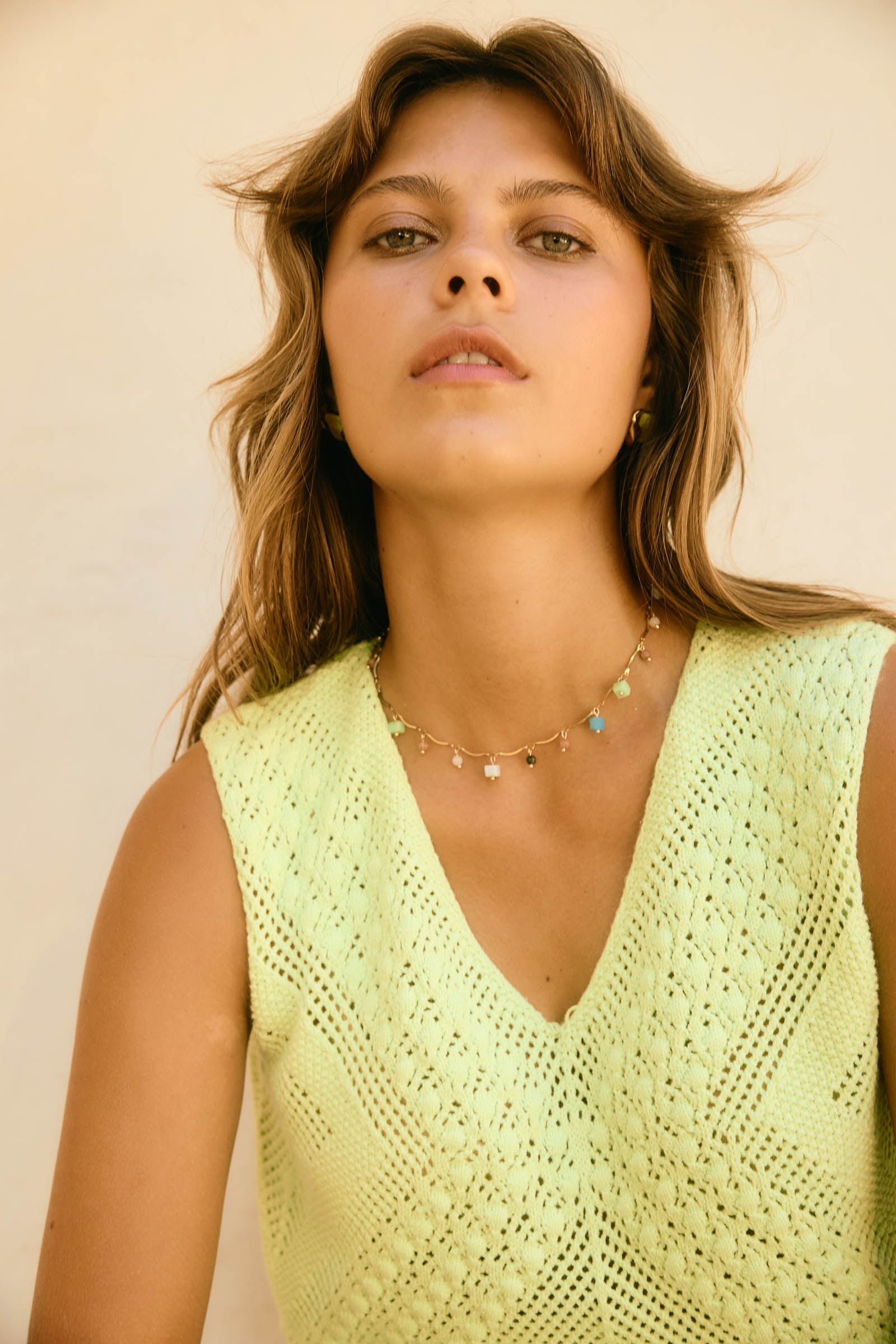 - Beaded necklace with flat chain detail