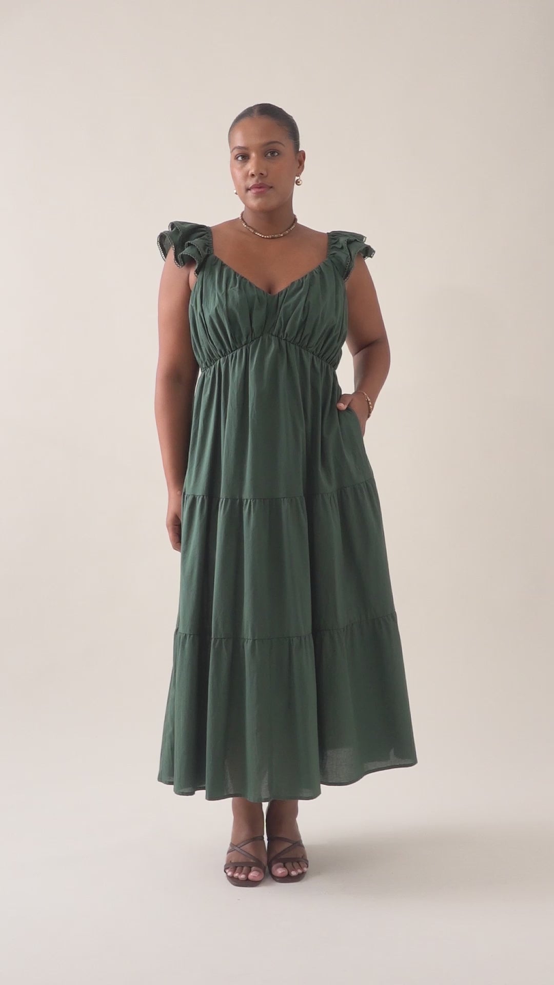 Crafted in soft cotton voile, the Aurora Frill Tank Dress features delicate double-layer frill sleeves, a gathered bust and tiered midi-length hem. Fully lined with side pockets for ease.