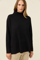A soft roll-neck jumper with a relaxed shape and easy drape. The ribbed knit, side splits and high-low hem add movement and comfort, while raglan sleeves keep the silhouette gentle and fluid. Wear with the Juno Knit Skirt or style with denim for simple winter dressing.