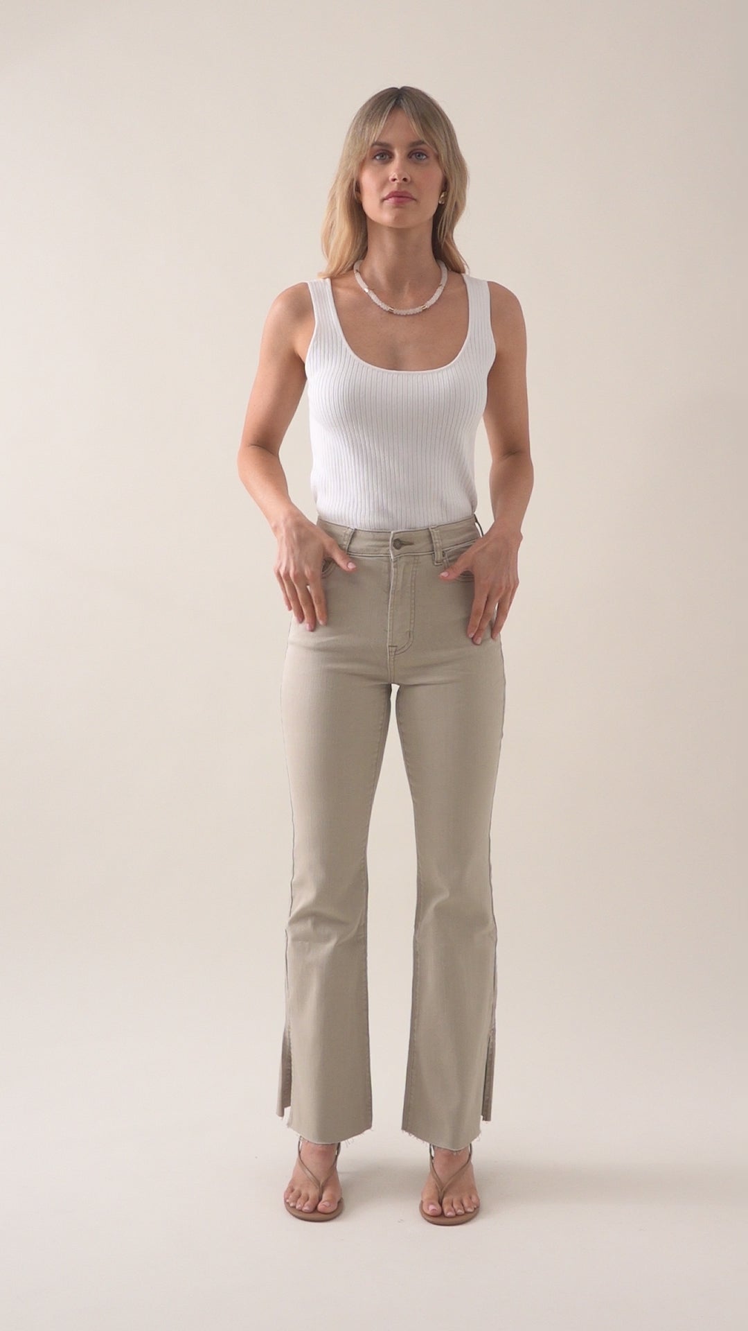 A modern bootcut shape with raw edge hem and side split details, the Nora Jean is crafted from soft stretch denim for all-day comfort and effortless wearability. Designed with a flattering high-waisted fit that hugs in all the right places and elongates the leg. Finished with five-pocket styling and soft structure for a timeless look.