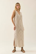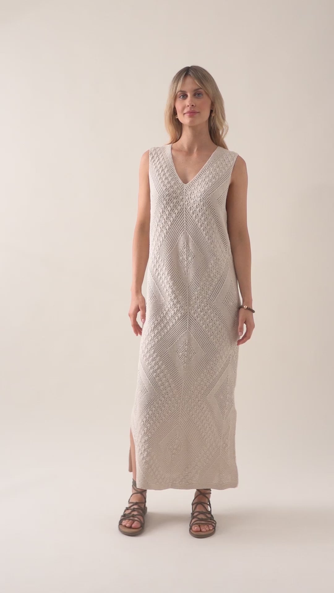 A sleeveless summer knit with laid-back polish, the Sylvie Dress features a flattering V-neckline, side splits and subtle diamond texture. Its 7/8 length makes it perfect for day-to-night ease.