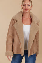 The Eris Jacket embodies classic winter style with its cosy shearling lining that extends from the lapels to the cuffs for additional warmth. The zipper closure adds an extra layer of protection against chilly weather. Perfect for icy winter days, this jacket pairs beautifully over a knit top, maxi skirt, or jeans and boots for a chic winter look.