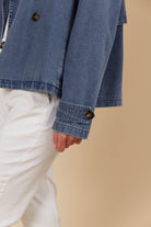 The Freya Crop Trench is the jacket your wardrobe has been waiting for. With its cool, boxy cropped design and quality cotton fabric, this trench adds a fresh twist to your outerwear collection. Featuring a double-breasted style, it's the perfect piece to throw on over any outfit for a quick, stylish look. Pair it with a knit top, jeans, boots, and a hat for a chic, city-ready vibe.