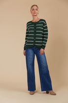 Juno Stripe Jumper/Cardigan - Pine