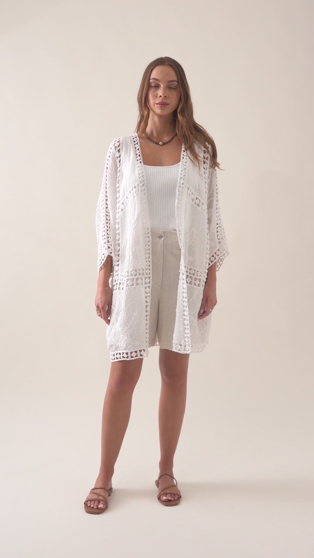 Breathable, comfortable and light, the Oline Lace Kimono is the perfect summer throw-on. Made from soft cotton with floral embroidery and cut-out lace detail, it elevates even the simplest look.