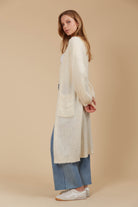 The Pallas Cardigan is the ultimate companion for off-duty moments, offering a relaxed yet stylish aesthetic. In a longline silhouette with a luxurious Mohair-like texture, it provides warmth and comfort reminiscent of a favourite blanket. Its open-front design allows easy layering, complemented by oversized patch pockets for added convenience. Style it with a t-shirt, relaxed pants, and sneakers for an understated, casual outfit.