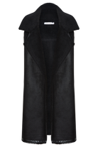 The Eris Vest is the perfect piece for a sophisticated winter outing, offering warmth and style for alfresco brunches, winery weekends, or weekend retreats. The contrast of shearling detailing adds a striking touch to this chic vest, which features a longline silhouette for extra coverage and practical welt pockets. For a sharp and refined ensemble, wear it over a knit top, tailored trousers, and sleek ankle boots.