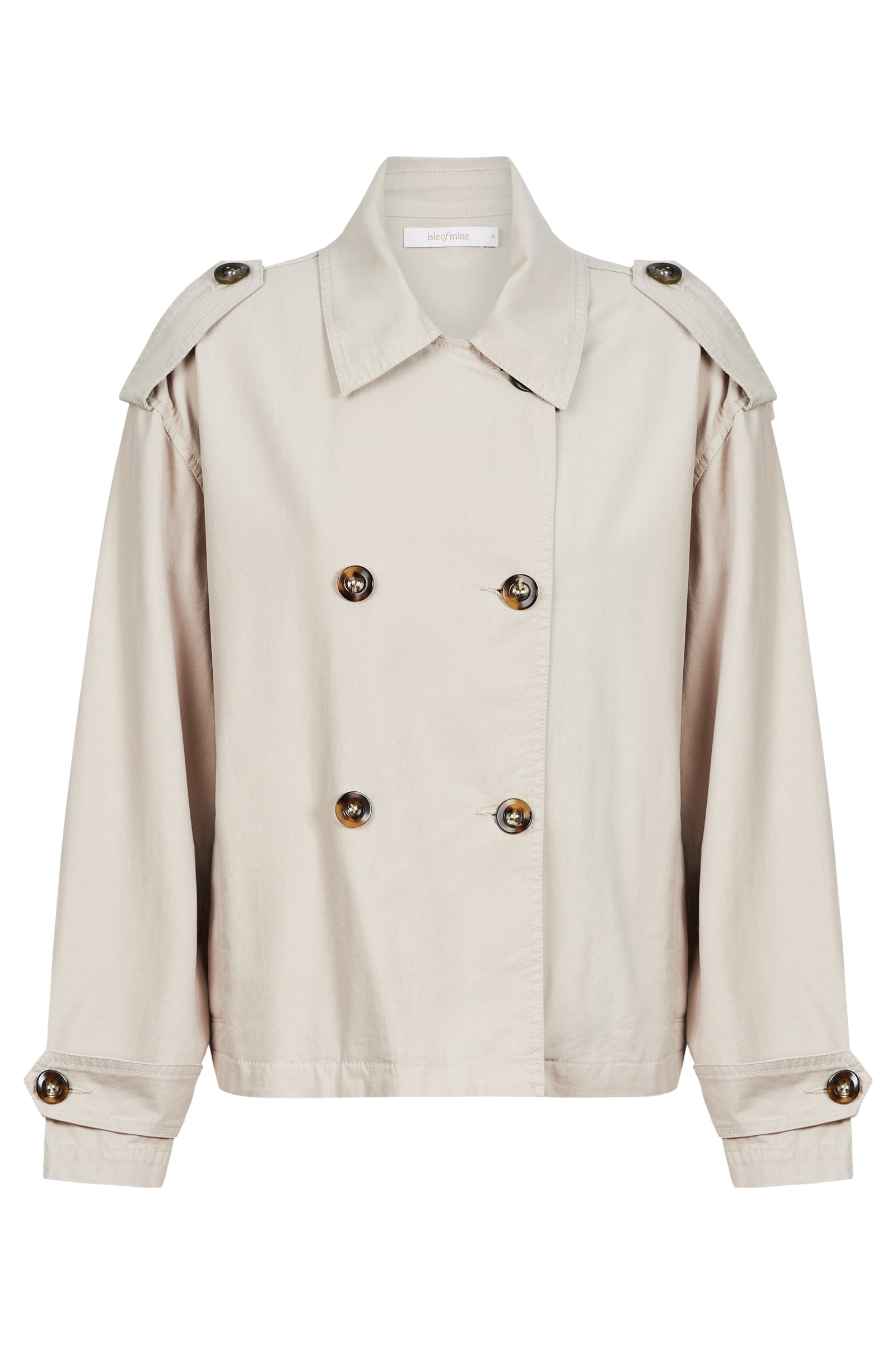 The Freya Crop Trench is the jacket your wardrobe has been waiting for. With its cool, boxy cropped design and quality cotton fabric, this trench adds a fresh twist to your outerwear collection. Featuring a double-breasted style, it's the perfect piece to throw on over any outfit for a quick, stylish look. Pair it with a knit top, jeans, boots, and a hat for a chic, city-ready vibe.