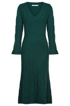 Made from a wool and recycled polyester knit weave, the Hera Knit Dress offers understated beauty. Its key features include a V-neck opening, a flared mermaid skirt, and a distinctive textured weave that adds depth to the design. Perfect for layering beneath outerwear, this midi dress is a versatile option for the office, an evening out, or any special event.