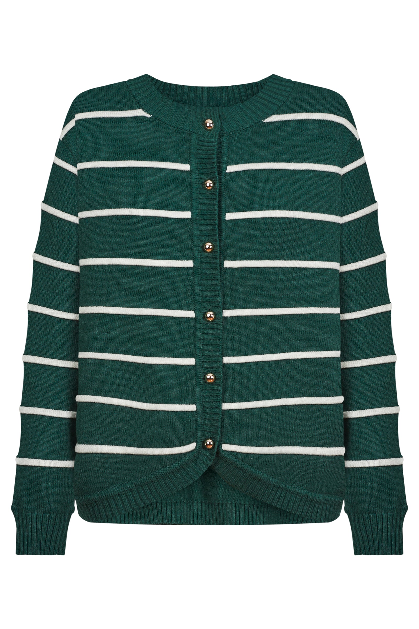 Discover endless styling possibilities with the Juno Stripe Jumper/Cardigan. Its reversible design allows you to switch between a classic jumper or a chic cardigan, making it adaptable to your mood and occasion. Thoughtful details like the button-down accents and thin contrasting stripes add sophistication to this versatile piece, seamlessly blending into your daily wardrobe.