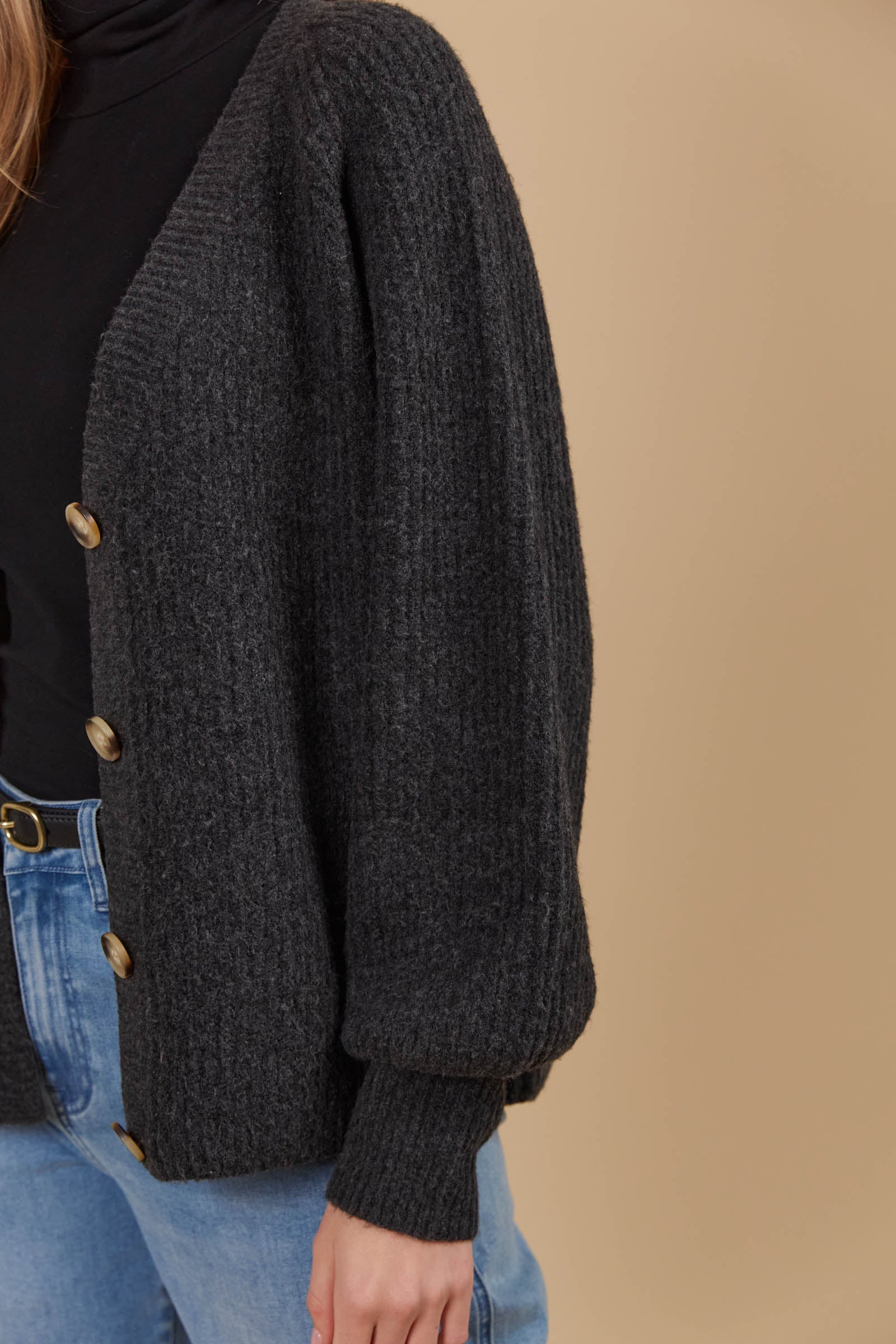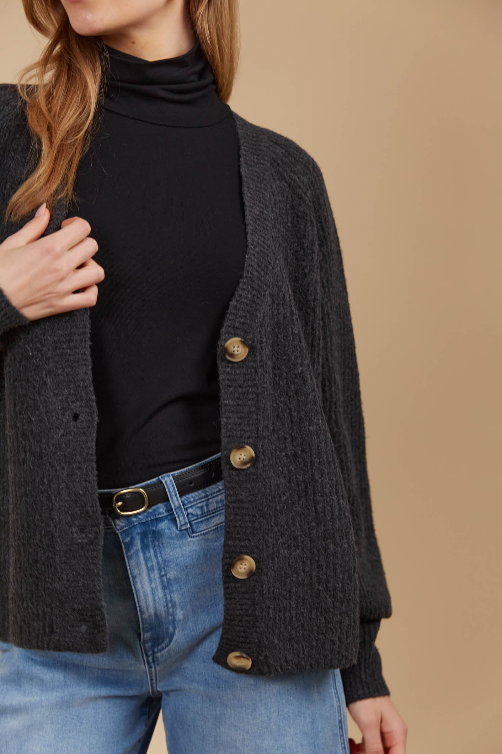The Miru Cardigan is a wardrobe staple that will stand the test of time. Its simple design features a straight body, full sleeves, and a button-down front, making it versatile enough to pair with many other pieces. Crafted from a wool and recycled polyester blend, the Miru Cardigan offers warmth and comfort, perfect for layering during the colder months.