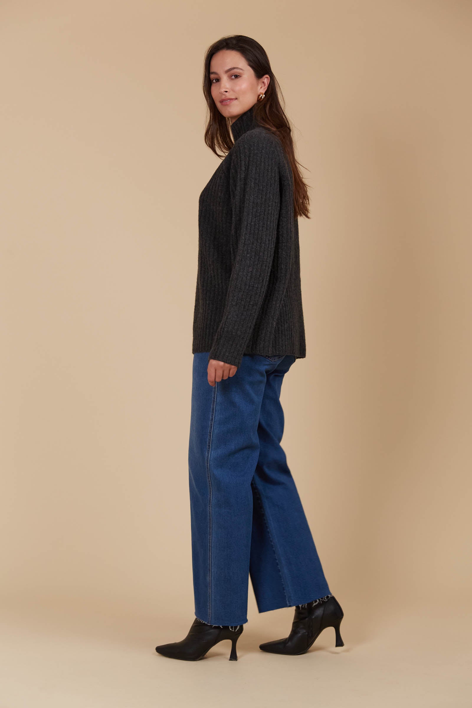 The Miru Jumper embodies cosy sophistication with its effortless silhouette and luxurious wool-recycled blend. This versatile knit is a fresh addition to your seasonal wardrobe, pairing seamlessly with linen trousers, classic denim, a breezy maxi skirt, or a tailored mini for a chic, well-coordinated look.
