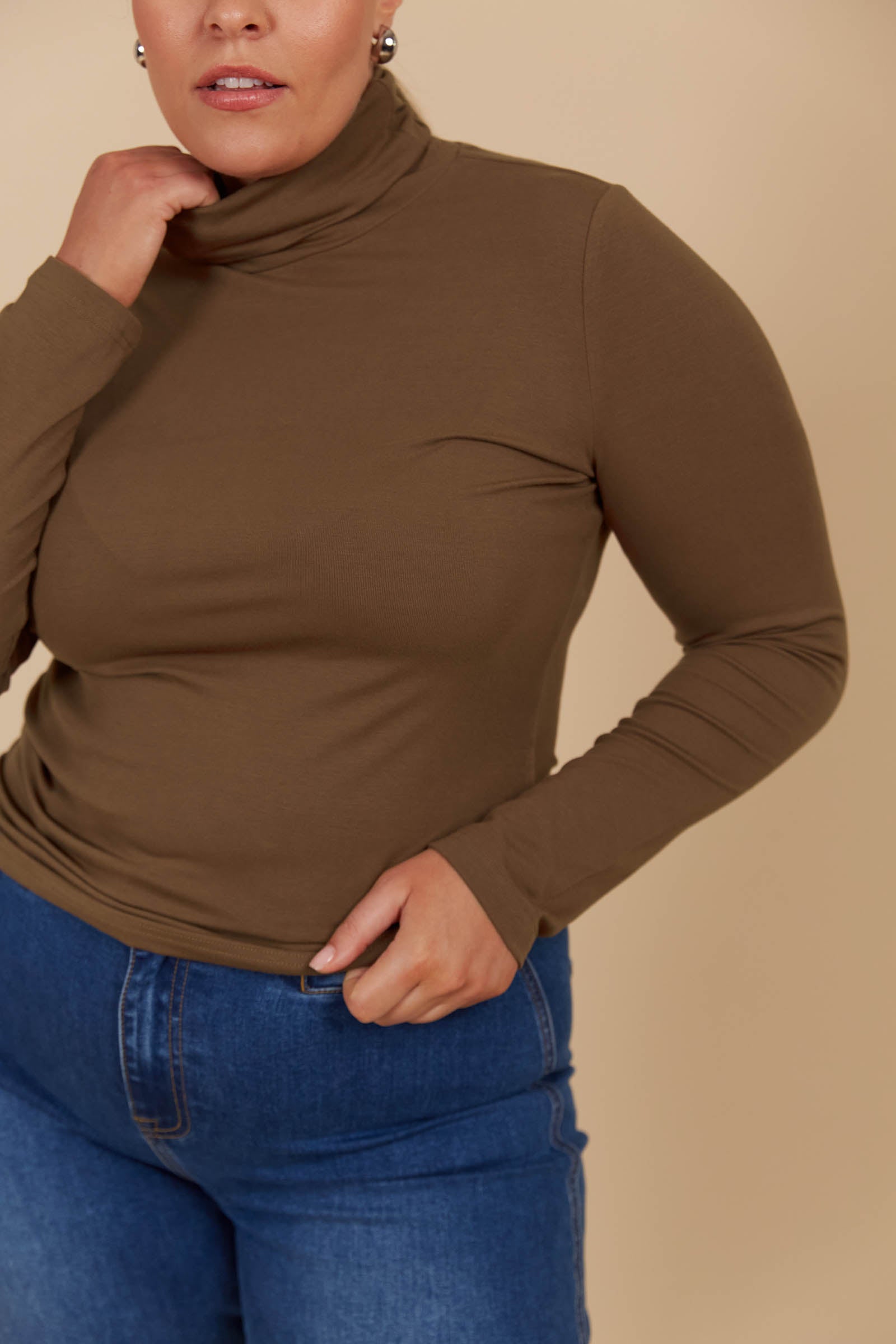 The Naria Roll Neck Top is a timeless essential for the colder season. Designed with a flattering, stretchy fit, long sleeves, and a rolled turtleneck for added warmth, it's the ideal base layer for any outfit. Wear it with a blazer and a maxi skirt for a professional setting, or layer it with a puffer vest, jeans, and a wool hat for a relaxed weekend ensemble.