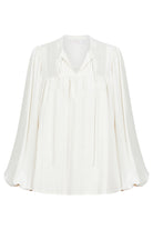 Achieve the perfect weekend style with the Aphrodite Blouse. Crafted with a linen blend, its relaxed fit offers a breezy, effortless vibe that complements your seasonal wardrobe. Featuring a flattering V-neck, a self-fabric tie, delicate lattice lace trim, and graceful balloon sleeves, this blouse pairs effortlessly with everything from fitted midi skirts to casual denim jeans or tailored trousers for a chic, laid-back look.