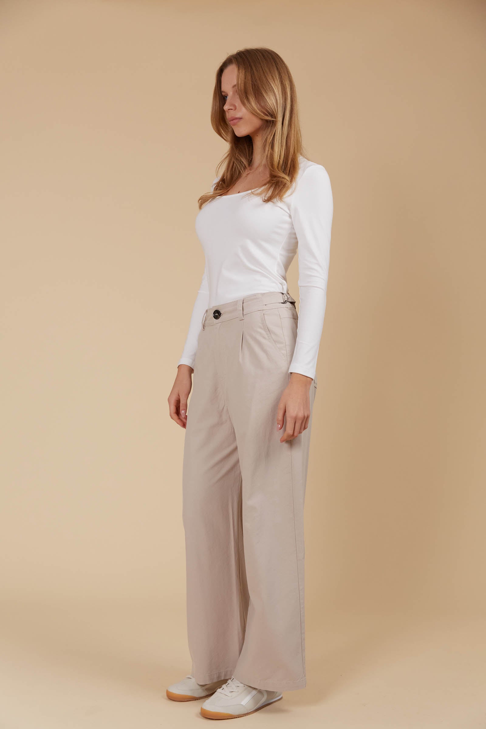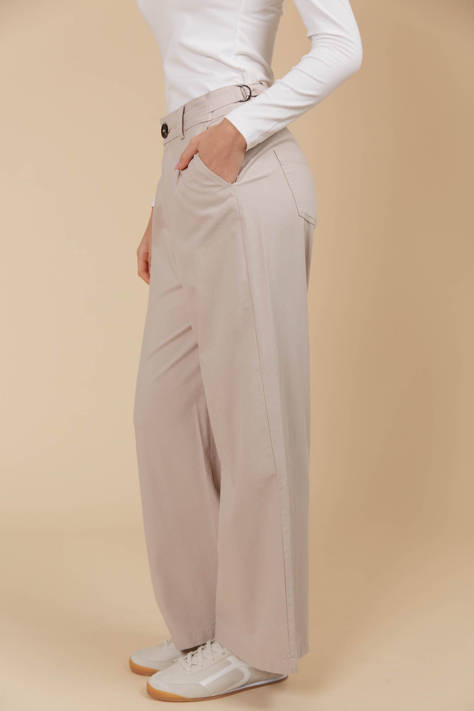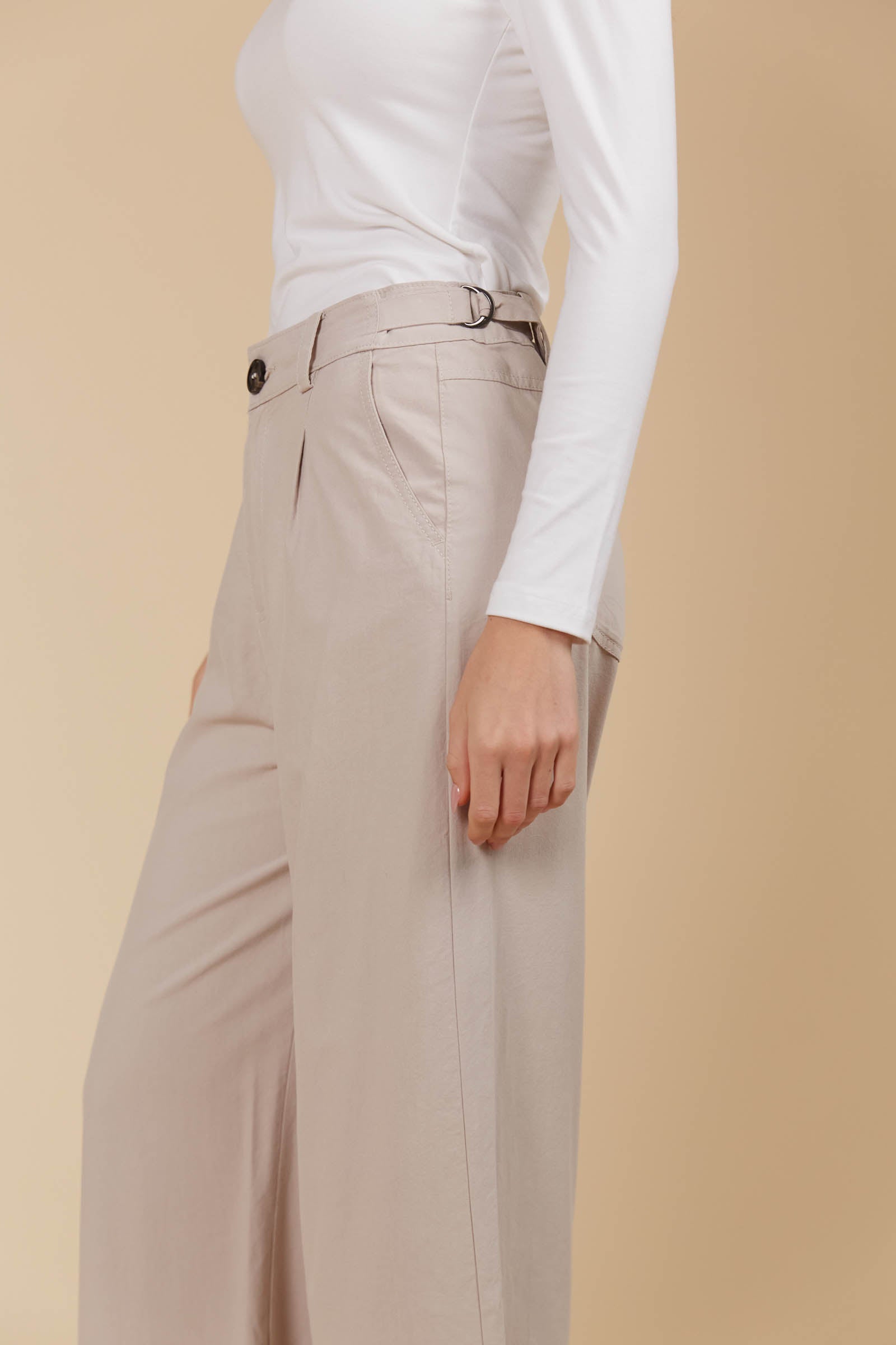 The Freya Pant is an ideal addition to your capsule wardrobe, offering a refined, wide-leg silhouette in premium cotton. Whether you're dressing for a smart look, a sophisticated evening, or a casual day out, these pants can do it all. The structured silhouette features a functional side adjuster to ensure a perfect fit. Keep it laid-back with a t-shirt and sneakers during the day, and dress it up for evening plans with a fitted blazer, knit top, and kitten heels.