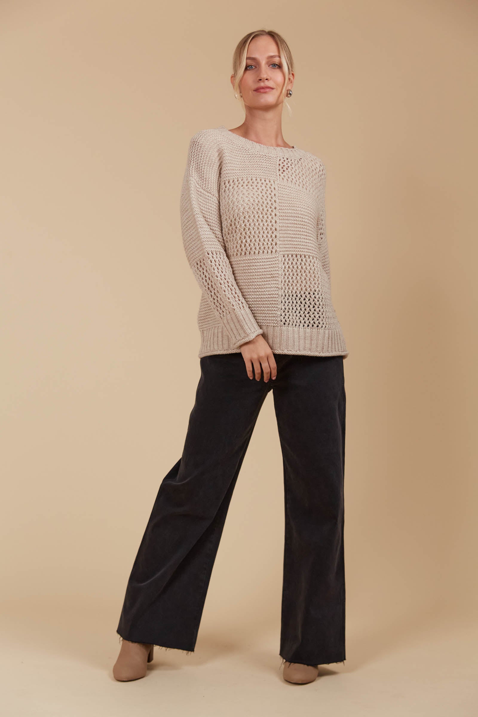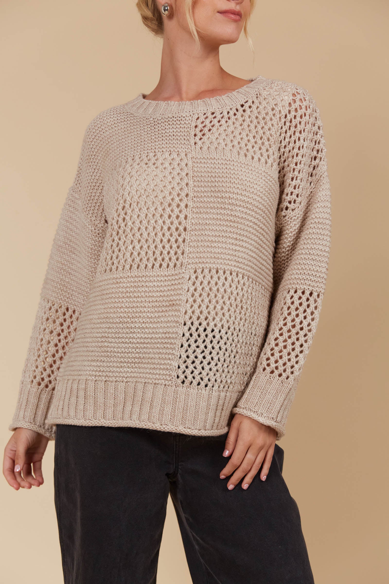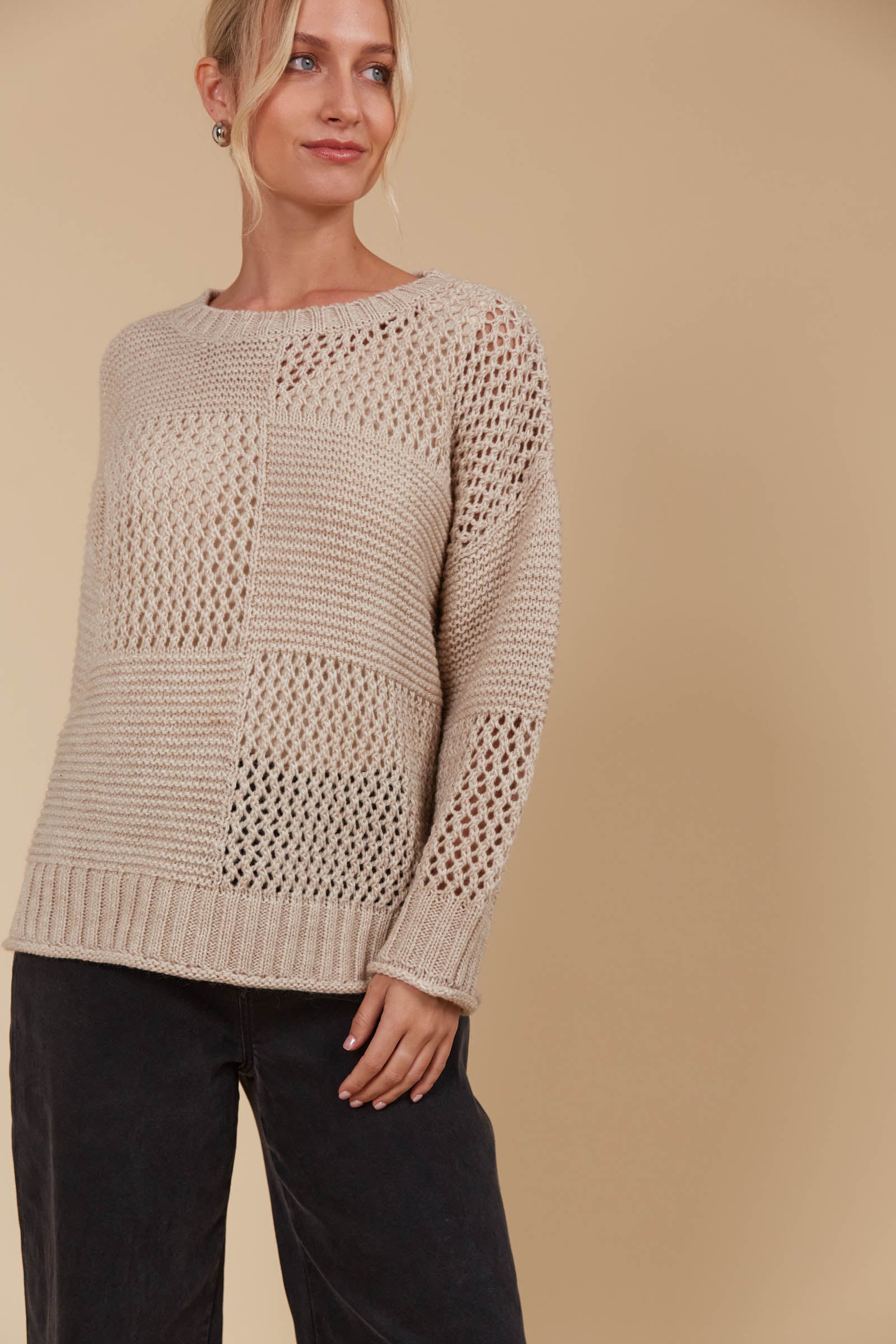 The Luna Jumper is your new excuse to live in knitwear. This classic knit gets a modern twist with a unique contrasting weave pattern in a perfect-for-the-season colour palette. Its relaxed fit makes it a layering pro—whether you're throwing it over a light tee or under a heavier coat. Crafted in a cosy wool blend, this knit is made for cooler days. Pair it with your go-to jeans, a snug scarf, and comfy loafers for a laid-back seasonal vibe.