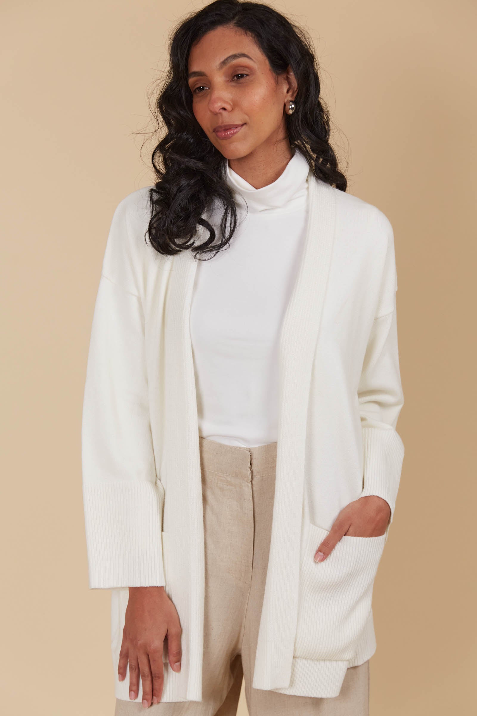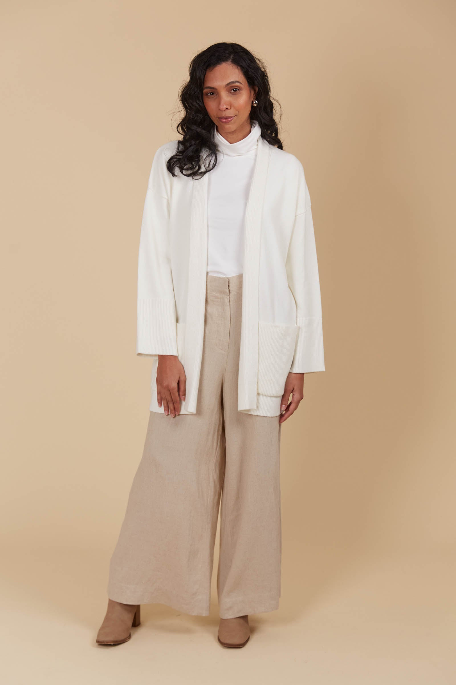 The Selene Cardigan offers a stylish approach to layering, making it ideal for casual outings, travel, or relaxing weekends. Its open-front design allows for versatile styling over various layers, while the self-fabric belt and luxurious wool blend lock in warmth. The oversized patch pockets add both functionality and flair, ensuring you can carry your essentials with ease.