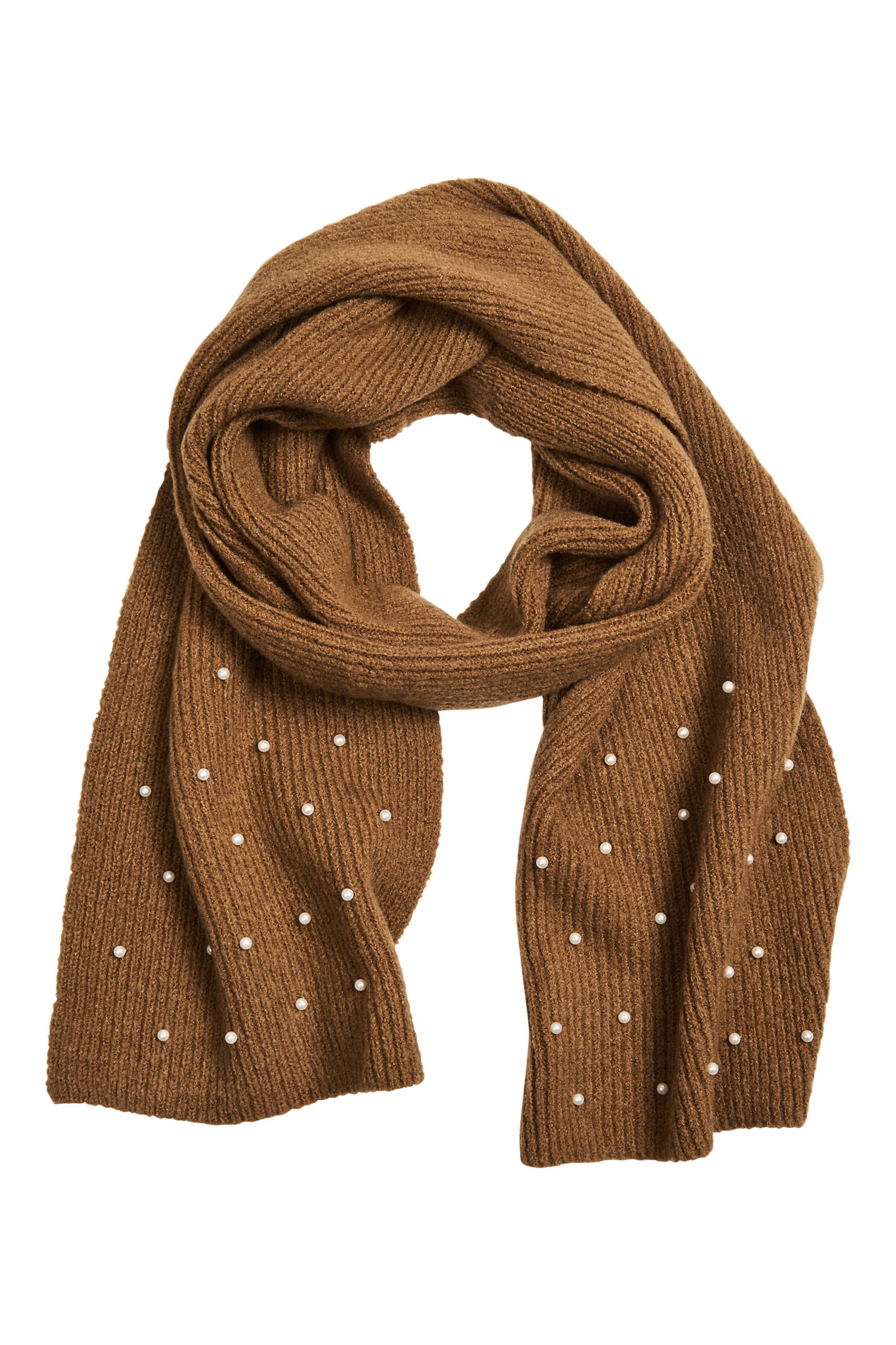 Braving the early morning commute just got a whole lot more stylish! The Athena Scarf takes a classic knit design and adds a touch of elegance with pearl beading woven into its fabric. This chic accessory adds a polished finish to your look while keeping you warm and cosy.